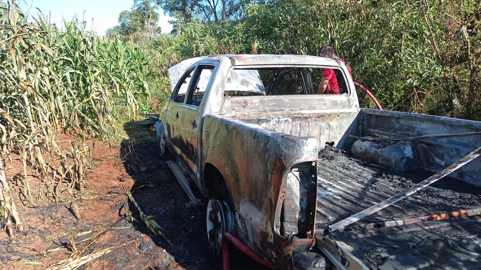 O veículo foi abandonado e localizado incendiado por volta das 8h. O Corpo de Bombeiros Militar foi acionado para combater as chamas.