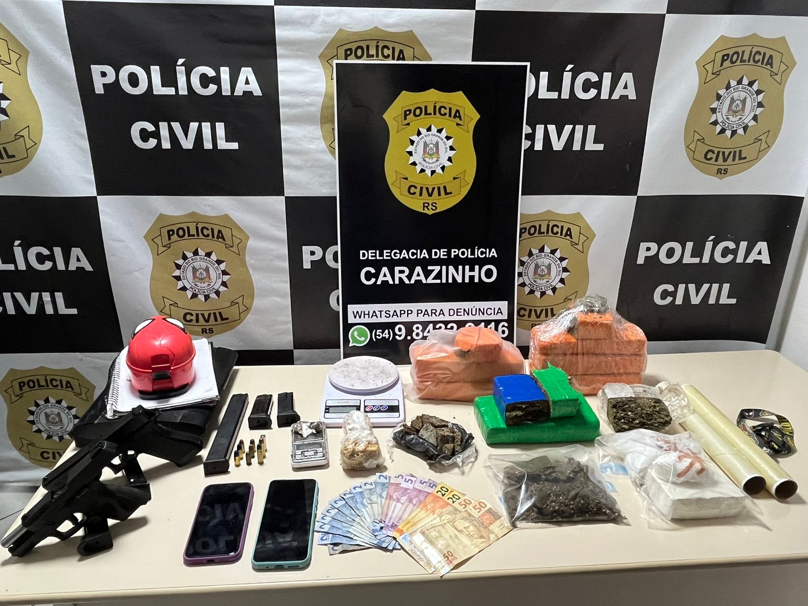 Na tarde desta sexta-feira (26), agentes da DP/Carazinho, coordenados pela Delegada Rita Felber de Carli, durante cumprimento de Mandado de Busca e Apreensão relacionado à investigação decorrente de tráfico de drogas, realizaram a prisão em flagrante de um homem pelos crimes de Tráfico de Entorpecentes e Posse Irregular de Arma de Fogo.