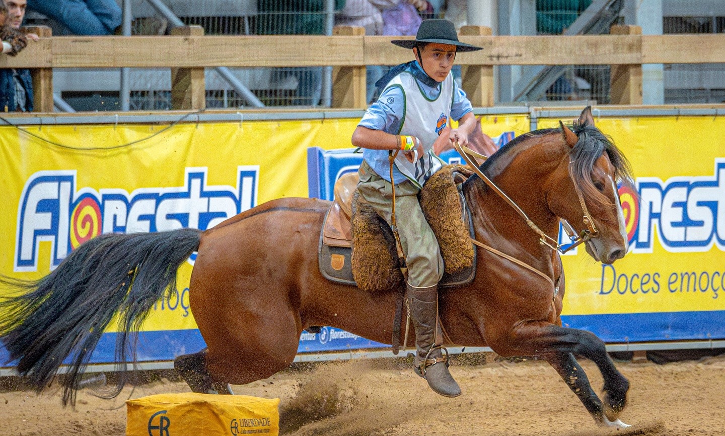 Freio de Prata Jovem em 2022 e em 2023, Lucca Xavier Rodrigues conquistou este ano, durante a Expointer, em Esteio, o Freio de Ouro Jovem, na 2ª Supercopa Jovem, categoria Infantil B.