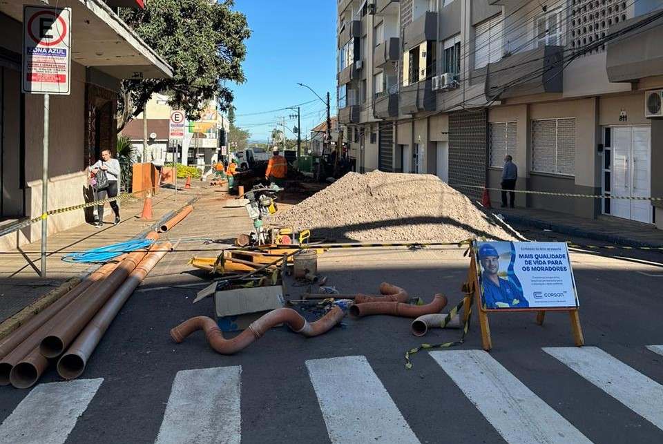 Instalação de redes para coleta e tratamento de esgoto no município chega ao centro de Carazinho