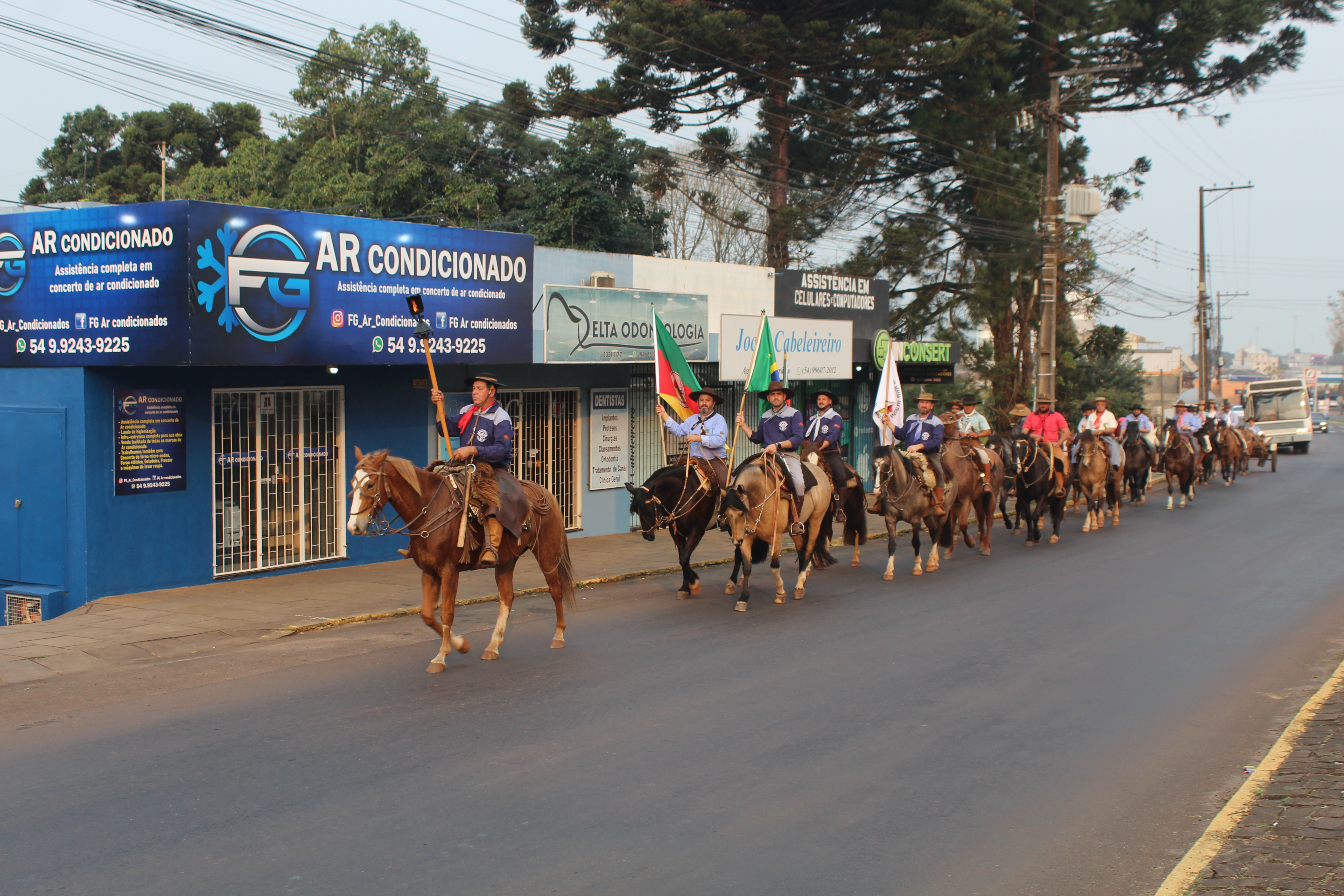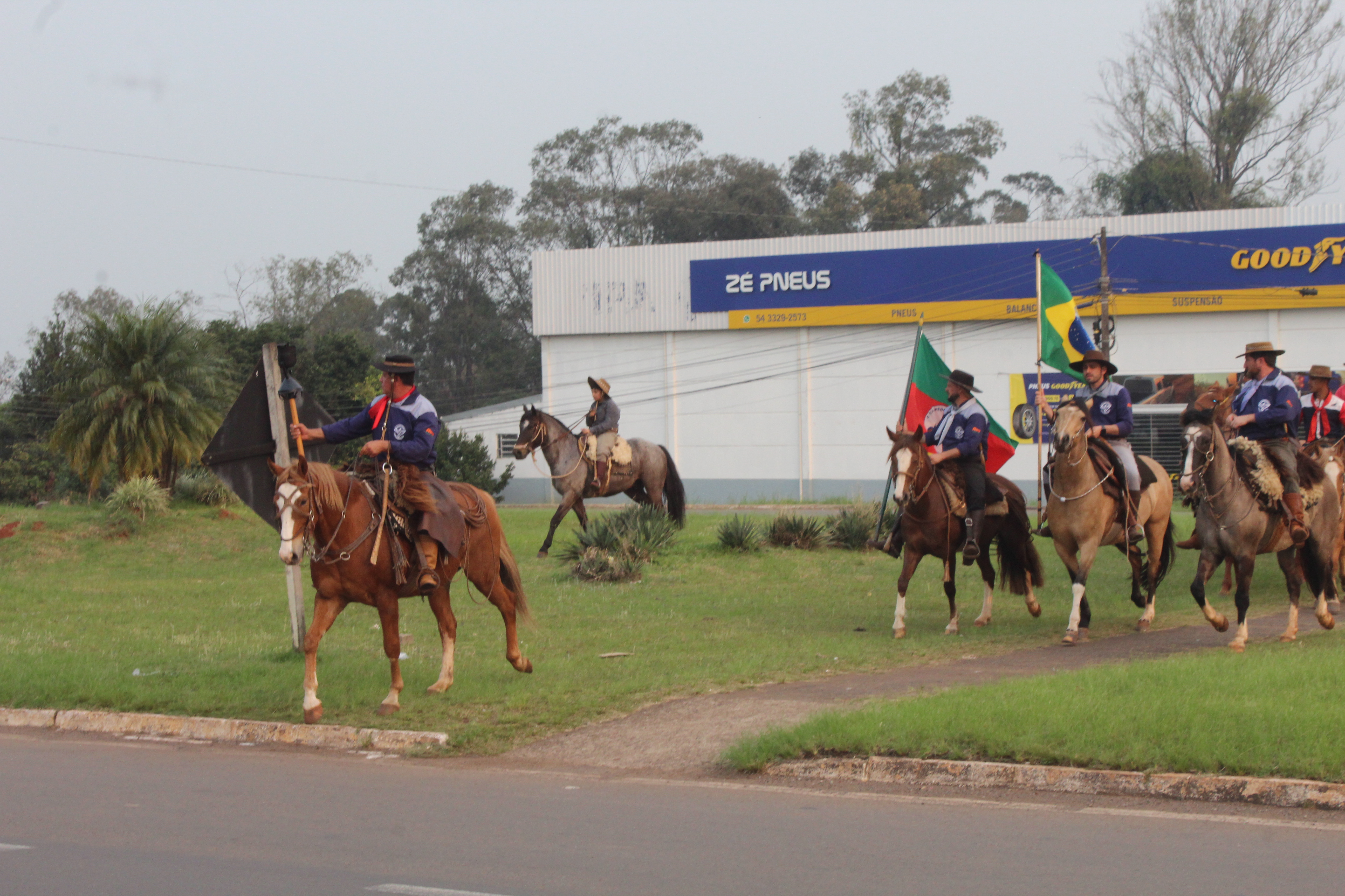 Os tradicionalistas percorreram durante todo o dia deste sábado o trajeto da RS 142, entre Não-Me-Toque e Carazinho, parando apenas para o almoço. Chegaram ao Trevo do Avião por volta das 16h40min. Percorreram a Avenida Flores da Cunha até a Praça Albino Hillebrand, tomara a Rua Pedro Vargas até a Almirante Tamandaré. Acessaram então a Antônio Karpen, seguiram pela Felipe Camarão e a XV de Novembro até a sede do CTG. Lá foram recepcionados pelo patrão Sandro Xavier e os músicos Acácio Silva e Luiz Flávio de Souza Maidana.
