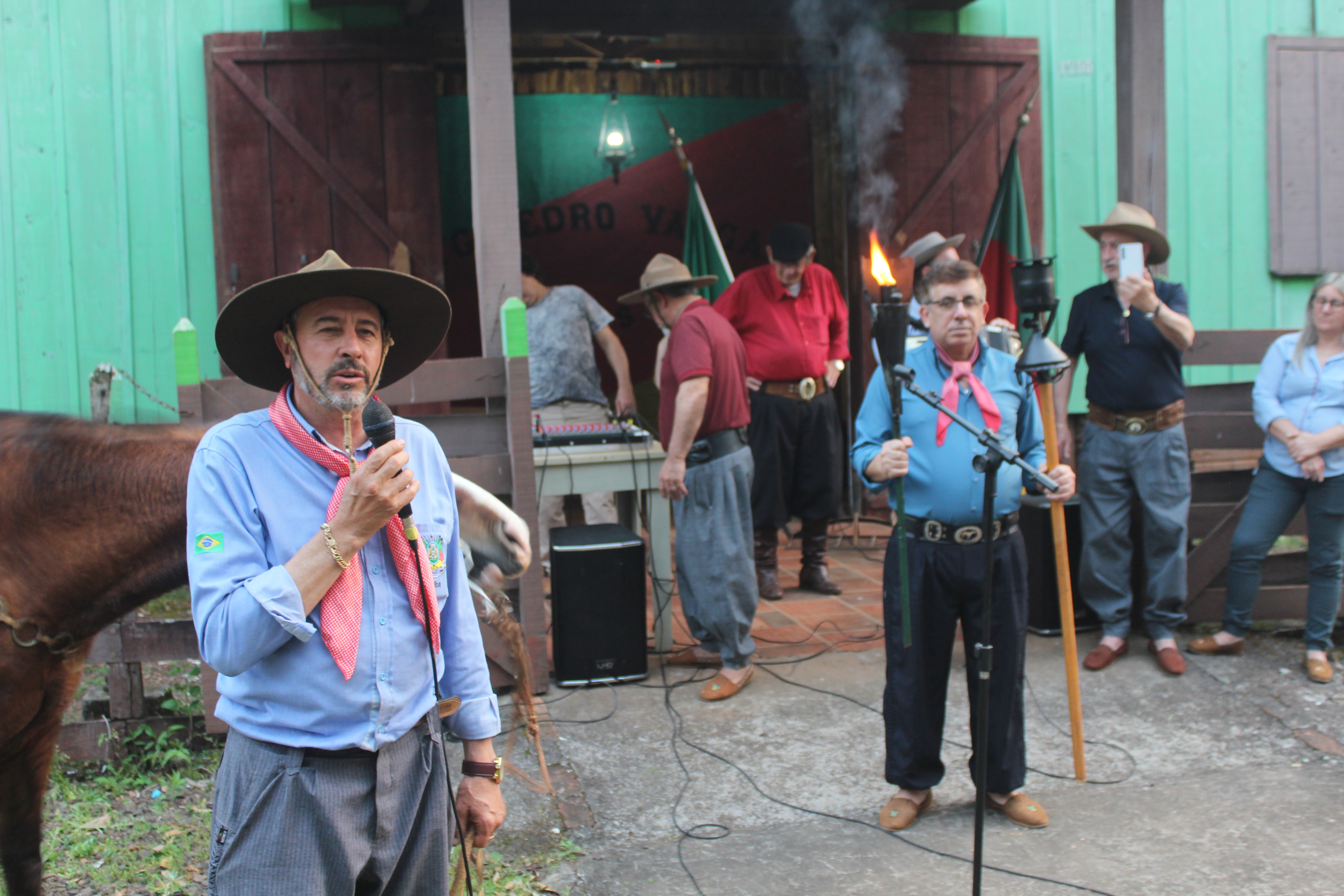 Em seguida, o coordenador do CMTG e patrão do Vereda das Tropas, GIlberto Roos da Silva, entregou a Chama Crioula ao patrão Sandro. Agora, a responsabilidade de mantê-la acessa é do CTG Pedro Vargas. A abertura oficial da Semana Farroupilha em Carazinho é na sexta-feira (13), a partir das 9h, na Praça Albino Hillebrand, quando todas as entidades tradicionalistas e pessoas interessadas poderão pegar uma centelha.