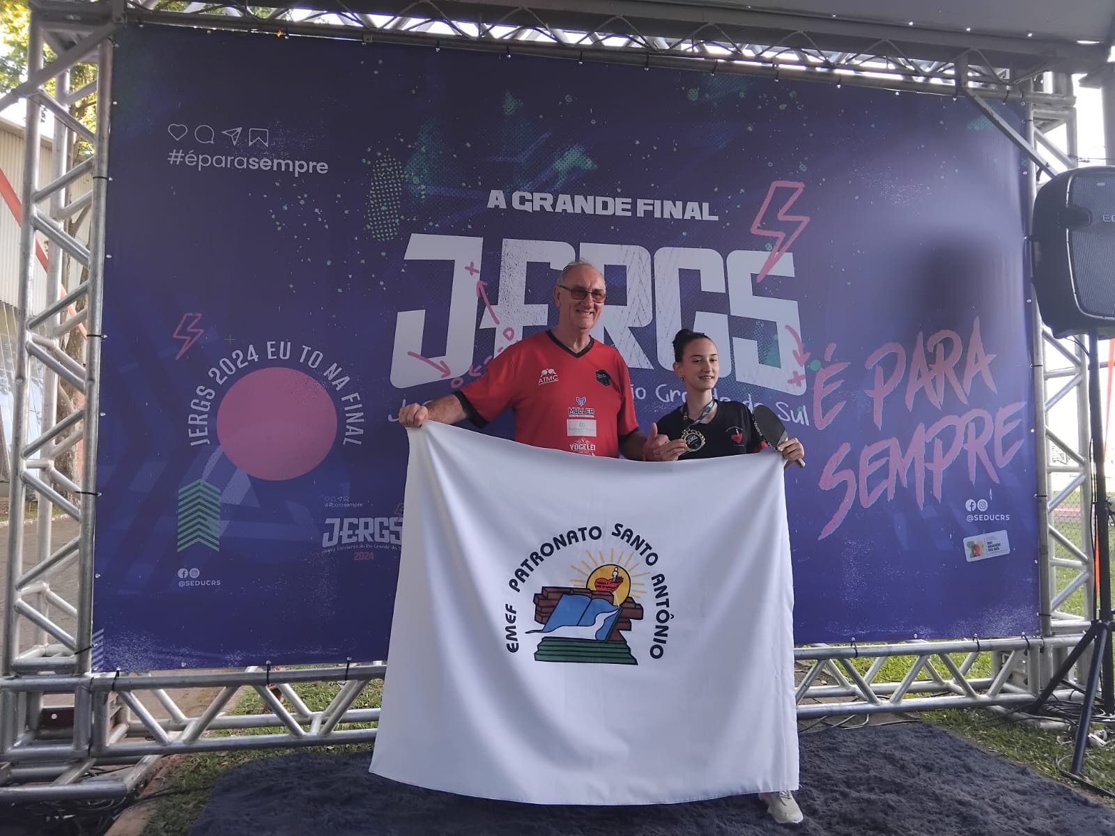 Mesatenistas de Carazinho tiveram importantes compromissos no fim de semana e voltaram com conquistas históricas. No sábado (19), Giuliana de Abreu, da EMEF Patronato Santo Antônio sagrou-se campeã estadual dos JERGS na categoria infantil feminino (atletas entre 12 e 14 anos). Ela é participante da oficina de tênis de mesa das escolas municipais ministrada por Jaime Müller, que esteve com ela em Canoas, enquanto técnico.