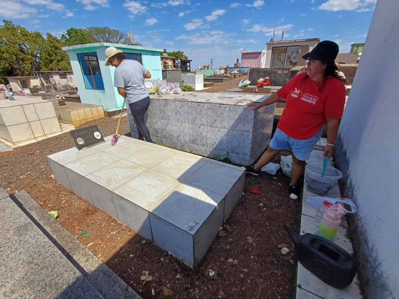 Irmãs Sandra e Iara Lopes mantém e limpam túmulos de familiares no Cemitério Municipal (foto Mara Steffens/O Correspondente)
