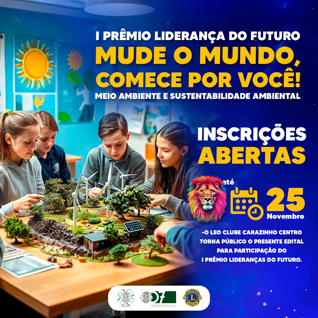 Com o tema “Mude o mundo, comece por você!”, o prêmio terá enfoque no meio ambiente e sustentabilidade. Para participar, os jovens precisam formar grupos e fazer a inscrição de suas ideias ou propostas. Duas iniciativas serão selecionadas e receberão investimento e auxílio dos integrantes do LEO Clube Carazinho Centro para serem executadas no decorrer de 2025.