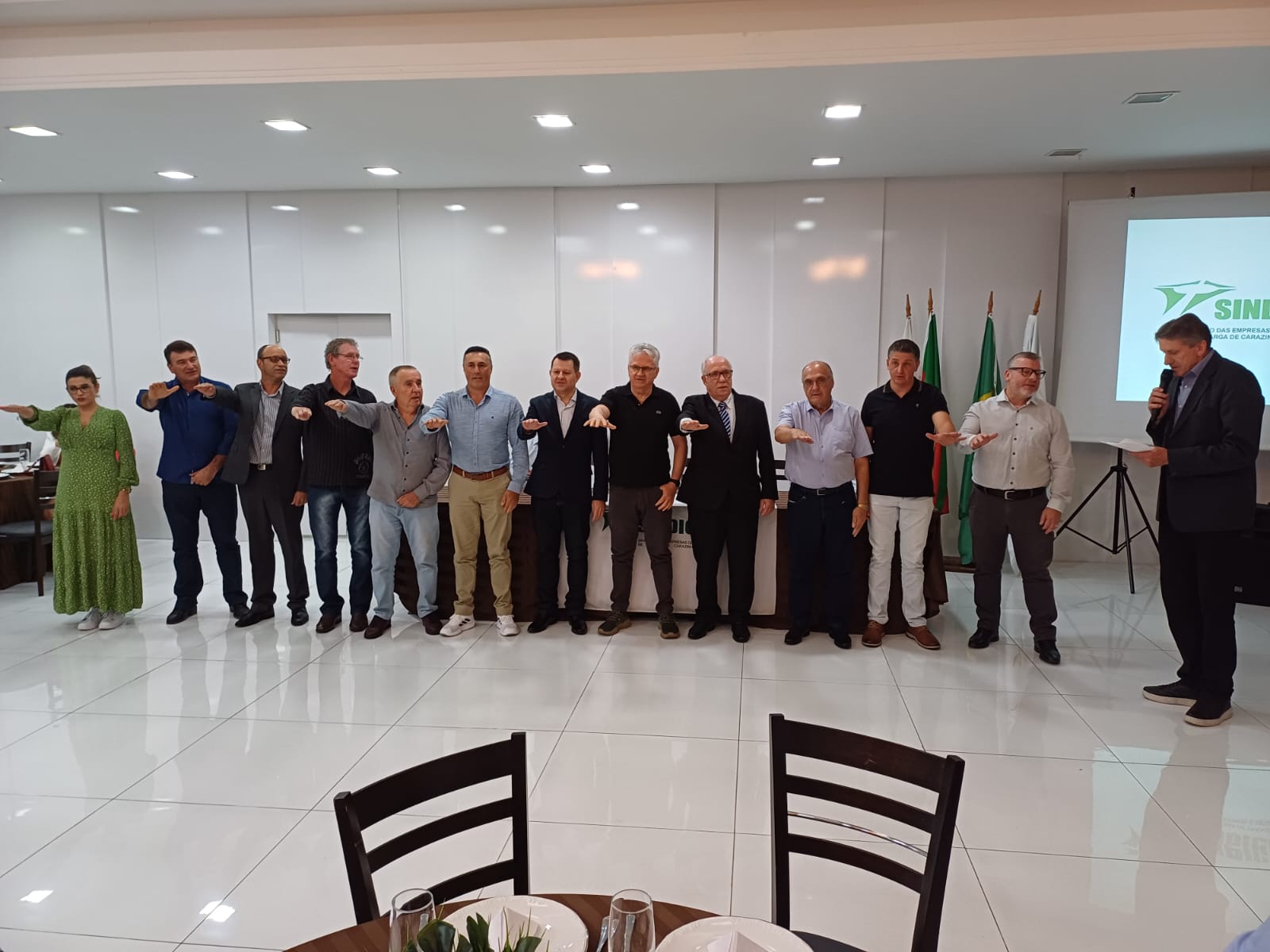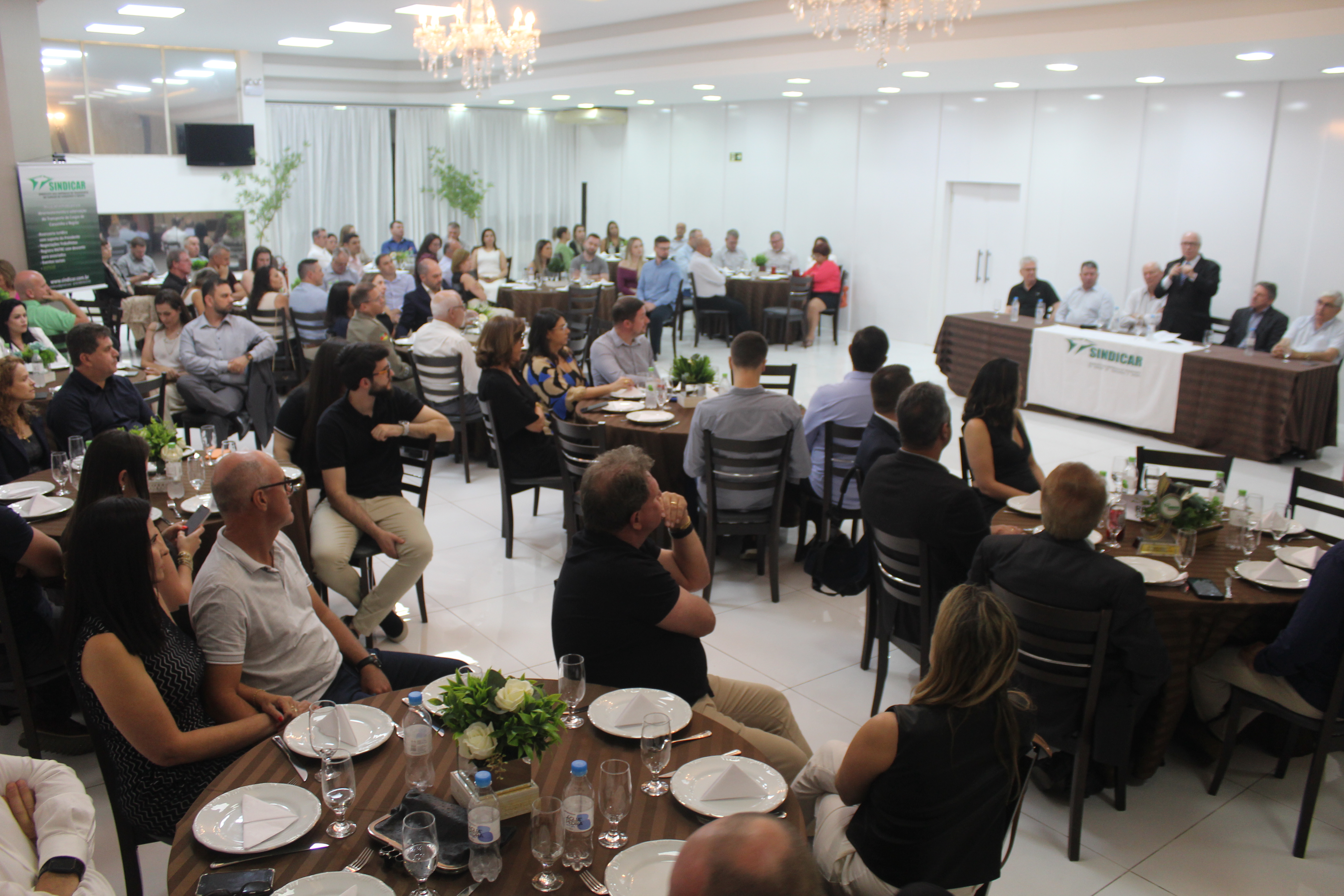 O Sindicato das Empresas de Transporte de Carga de Carazinho e Região - Sindicar promoveu na noite desta sexta-feira (23) o jantar de posse da diretoria eleita em junho e a tradicional homenagem do "Transportador do Ano". Foi no Macalé Eventos com a presença maciça dos associados, além do prefeito Milton Schmitz, o presidente da Câmara, Vanderlei Lopes, os presidentes da Associação Comercial e Industrial - ACIC, Josué Prestes, e da Câmara de DIrigentes Lojistas - CDL, Zani da Costa Santos, e o suplente de Senador pelo Progressistas, Ireneo Orth.