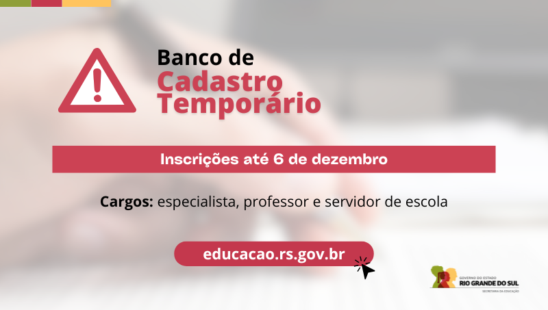 Inscrições abertas para o banco de cadastro temporário da Rede Estadual