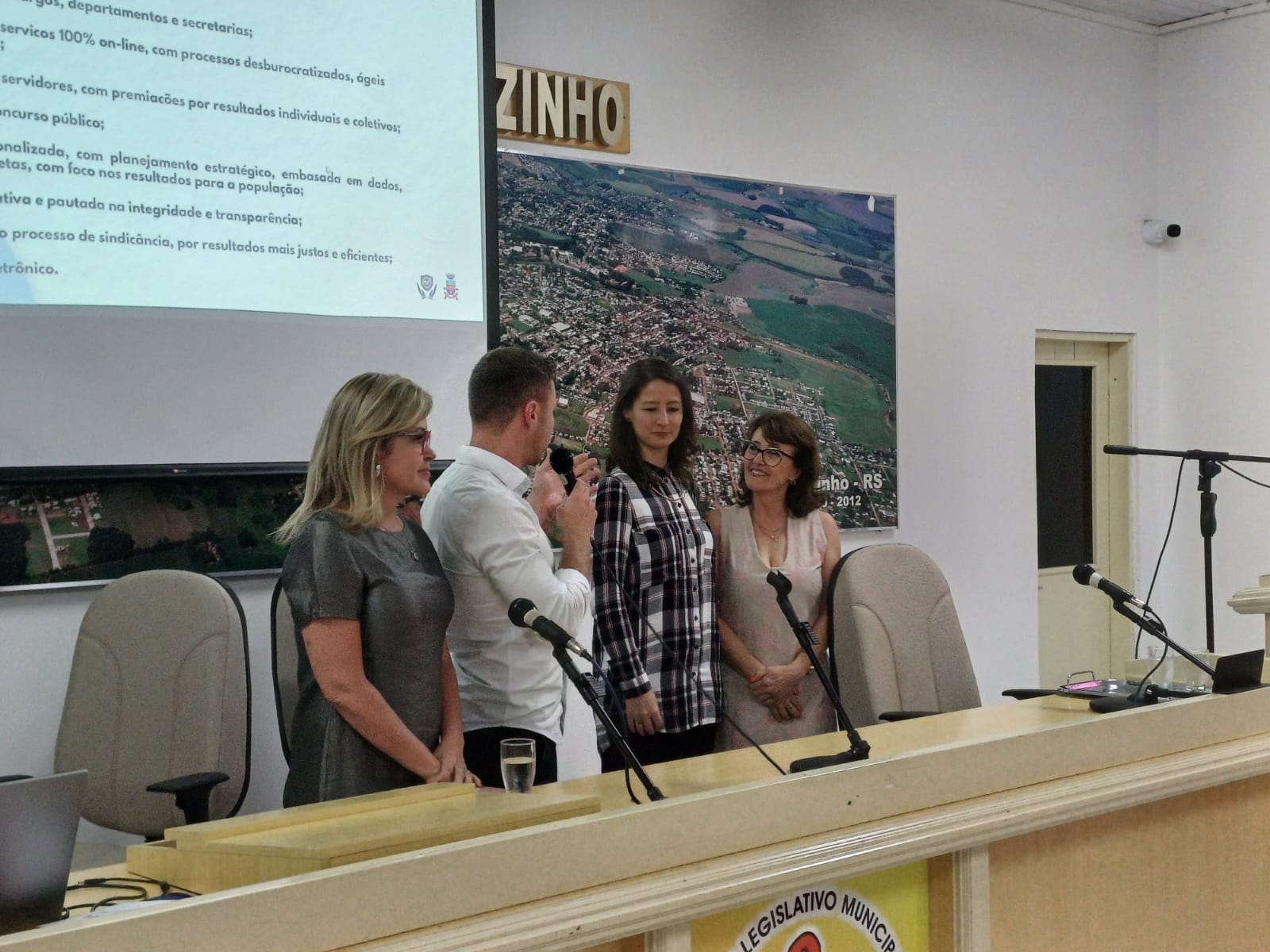 No fim da tarde de ontem (2), na Câmara de Vereadores de Carazinho, João Pedro de Azevedo e Valéska Walber anunciaram os primeiros nomes do primeiro escalão do futuro governo municipal. No local estavam apoiadores e lideranças partidárias da coligação.