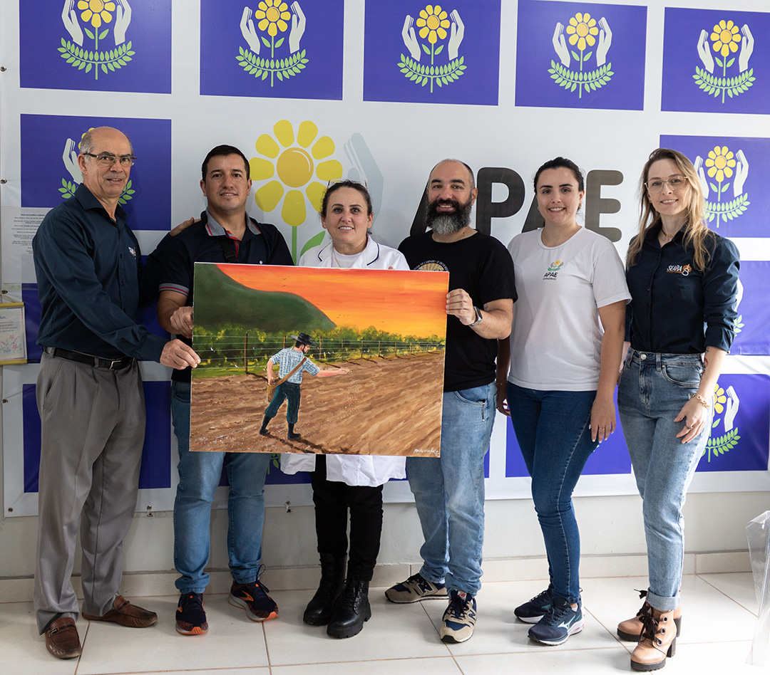 A obra foi arrematada pela seareira Raquel Beatriz Nienow por R$ 2.000,00, valor que a Associação Seara de Arte e Cultura Gaúcha doou para a Associação de Pais e Amigos dos Excepcionais (Apae) de Carazinho. “Arrematar essa obra me trouxe muita felicidade pois vou ter em casa um símbolo da 23a Seara. A imagem ilustrada no quadro retrata a realidade da minha família, que trabalha com a agricultura. E o mais importante de tudo é poder contribuir com a Apae, uma instituição fundamental para o desenvolvimento cognitivo e motor das pessoas que frequentam esse espaço. Então o momento é de muita felicidade”, ressalta Raquel.