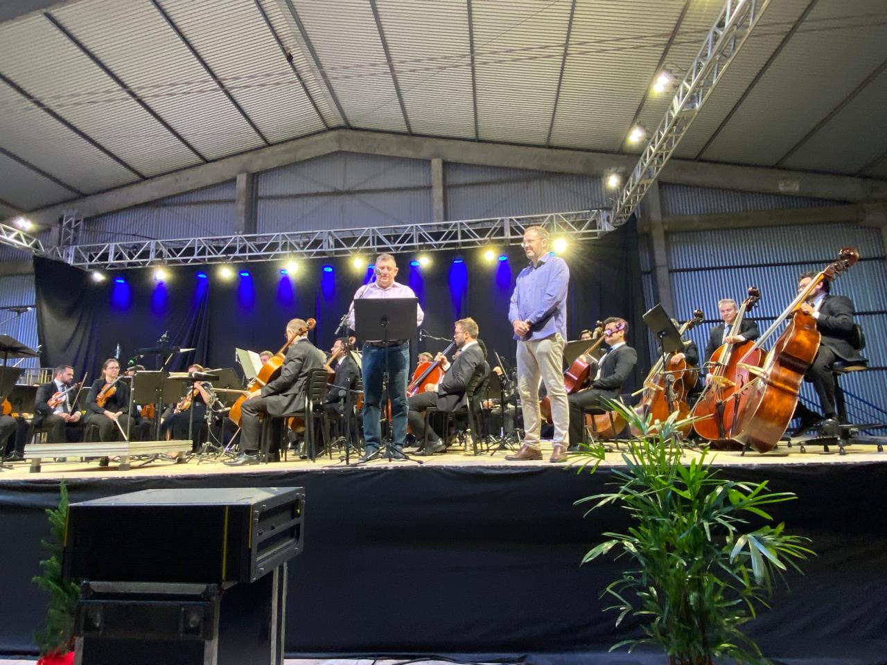 Com a presença de um gigantesco público no Pavilhão de Shows da Lagoa Fest no domingo (15), o Município de Lagoa dos Três Cantos recebeu a Orquestra Sinfônica de Porto Alegre - OSPA, uma das mais conceituadas no país, para o último concerto da orquestra neste ano de 2024.