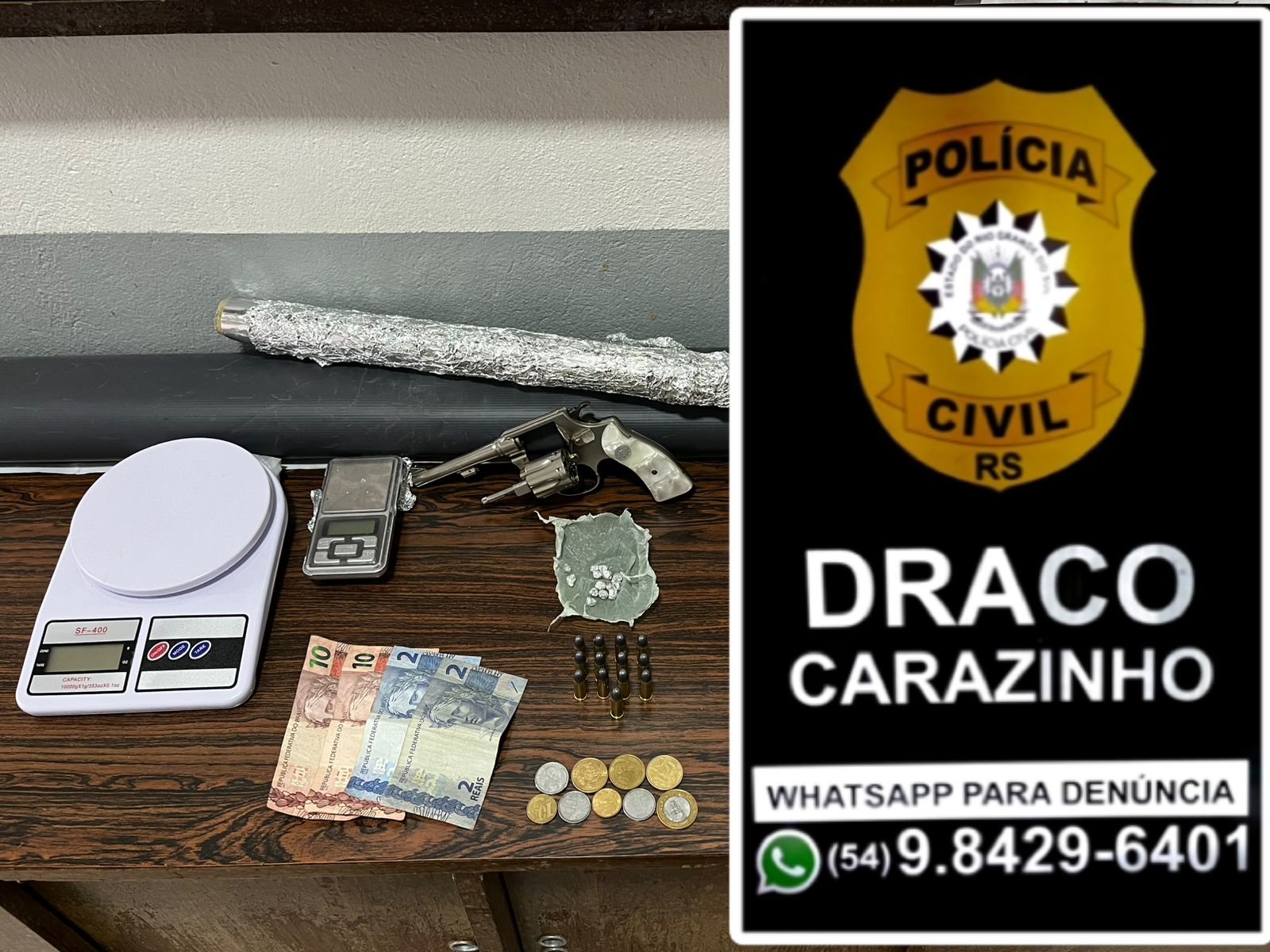 Na tarde desta quinta-feira (26), agentes da Delegacia de Repressão às Ações Criminosas Organizadas (DRACO) de Carazinho realizaram uma ação no bairro Floresta, que resultou na apreensão de um adolescente em flagrante por porte ilegal de arma e envolvimento com o tráfico de drogas.