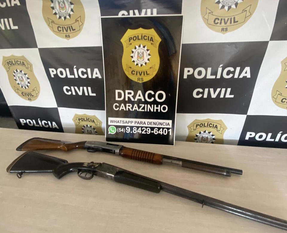 Na manhã desta terça-feira (14), a Polícia Civil, por meio da Delegacia de Repressão às Ações Criminosas Organizadas (Draco) de Carazinho, realizou o cumprimento de um mandado de busca e apreensão em uma residência no bairro Alvorada, onde foram localizadas duas armas de fogo e um indivíduo foi preso.