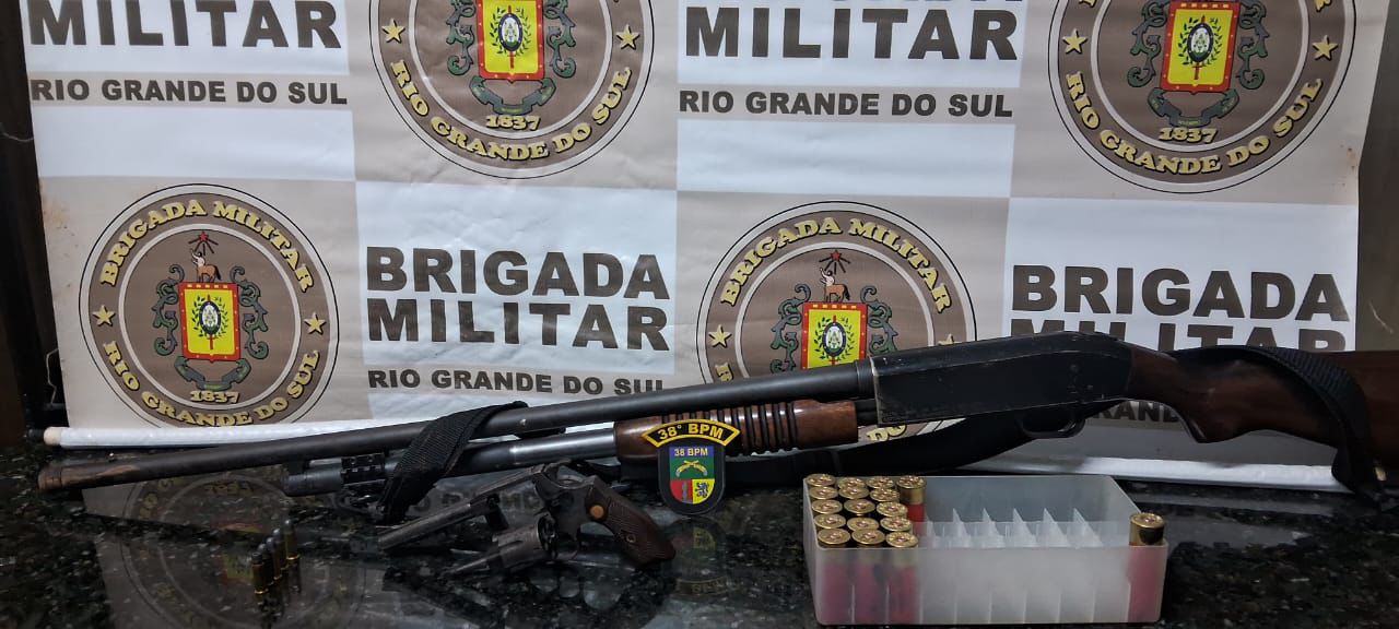 Durante a busca pessoal, os policiais encontraram com um dos suspeitos uma espingarda calibre 12, 16 cartuchos intactos e um deflagrado. Já com o motorista do veículo, foi localizado um revólver calibre 32, com cinco munições intactas e uma deflagrada.