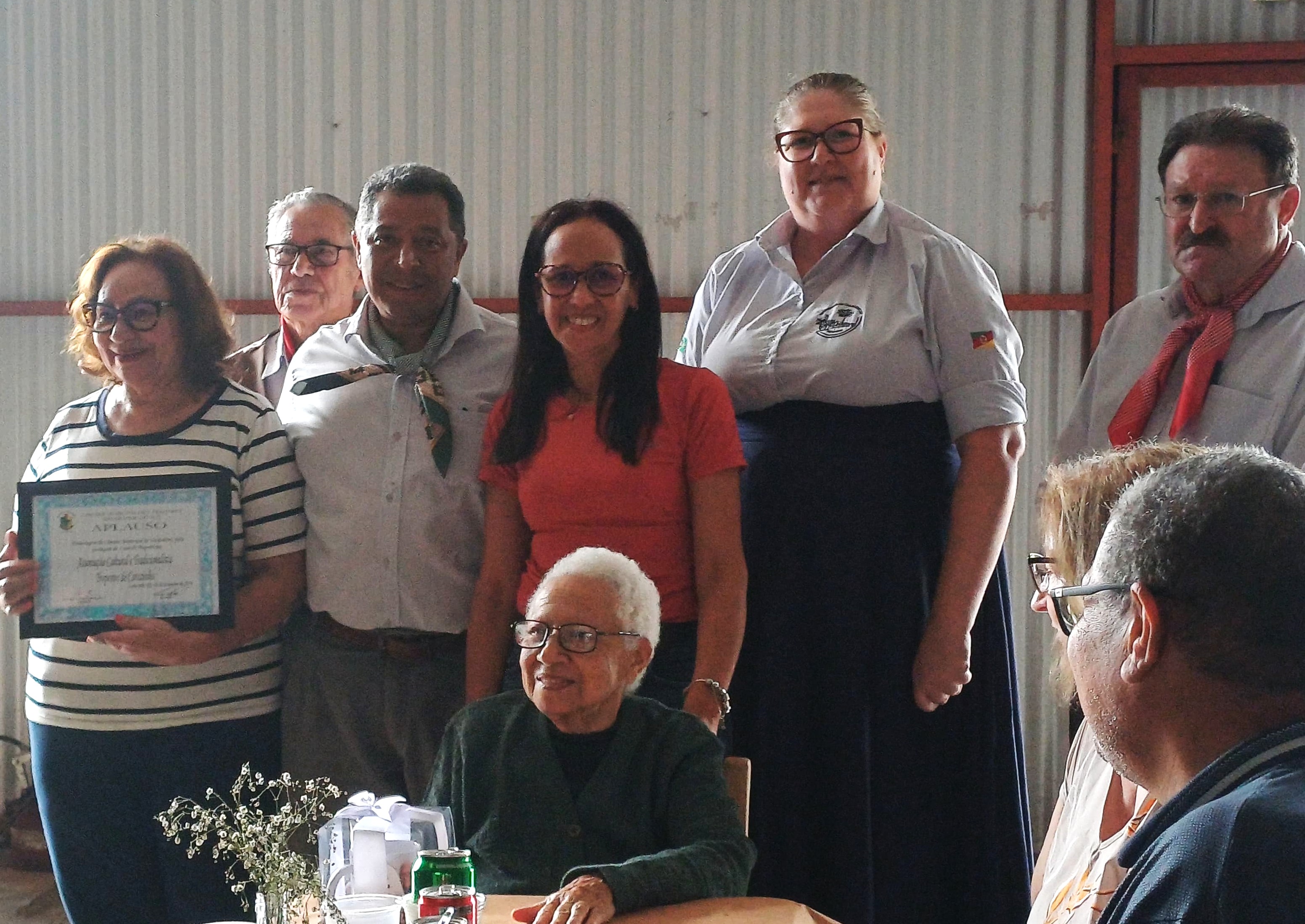 Na ocasião o patrão da Associação, Adari Francisco Ecker, entregou à filha de João Hugo, Maria Sirlei da Silva de Bortoli a moção de aplausos encaminhada pela Câmara de Vereadores por ocasião do primeiro ano de atividades, completado em dezembro de 2024.