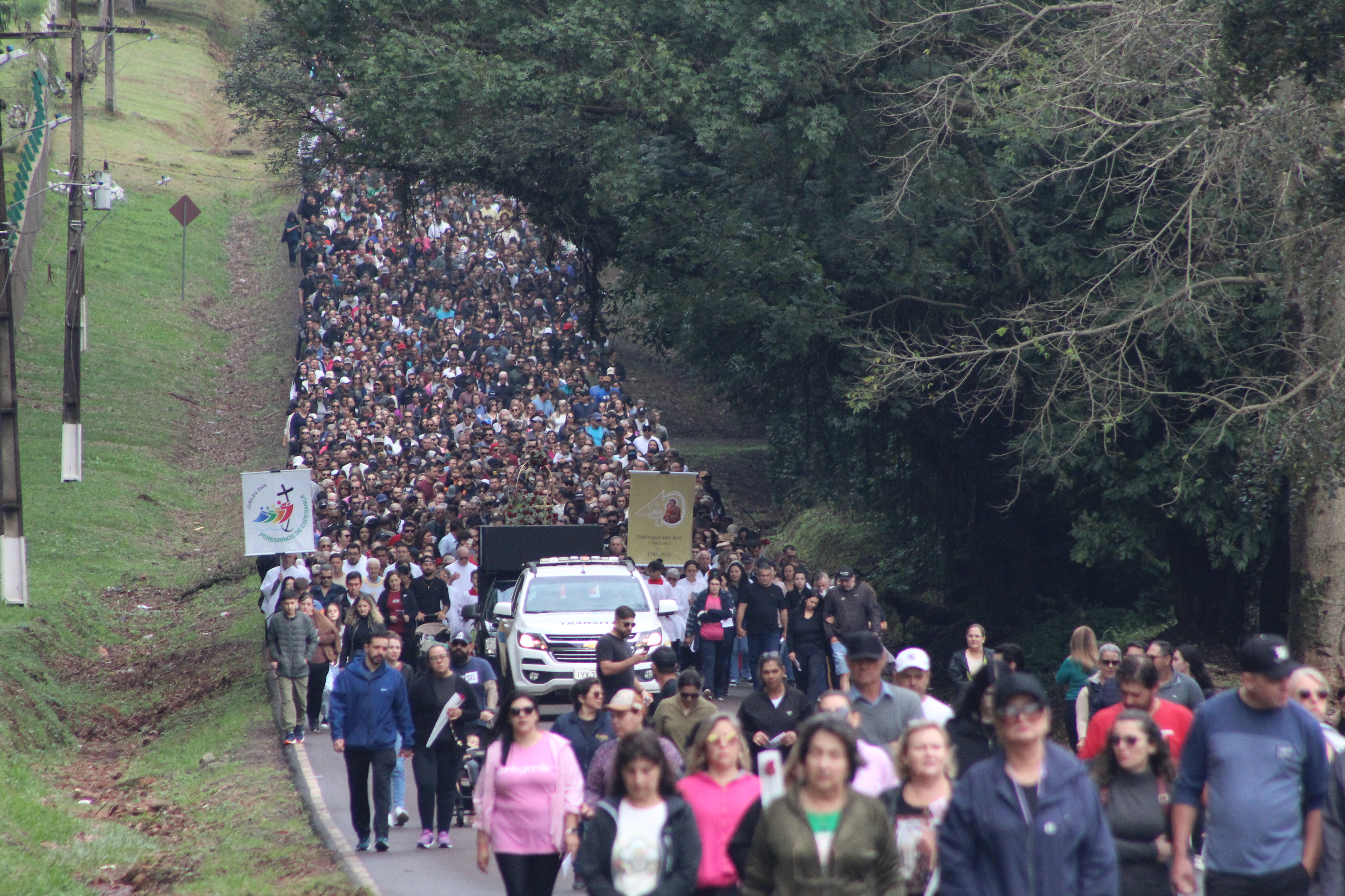 Buscando proteção, bênção ao atenção para um pedido especial, os devotos da santa participaram da 31ª Romaria em Carazinho neste domingo (25). Há quem diga que este ano mais pessoas fizeram o percurso da Paróquia São José até o santuário na estrada para Bela Vista. Muita gente fez o trajeto descalço, para agradecer uma graça alcançada. Teve que somente aproveitou para rezar e se reconectar com Deus e Santa Rita.