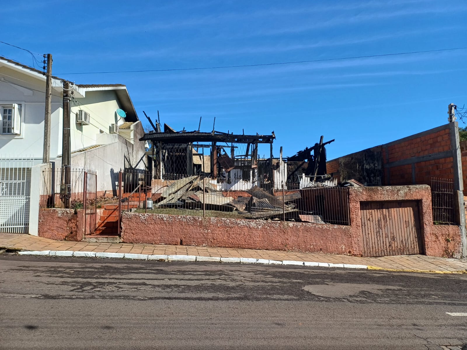 Mulher fica ferida em incêndio que destruiu casa no centro de Carazinho