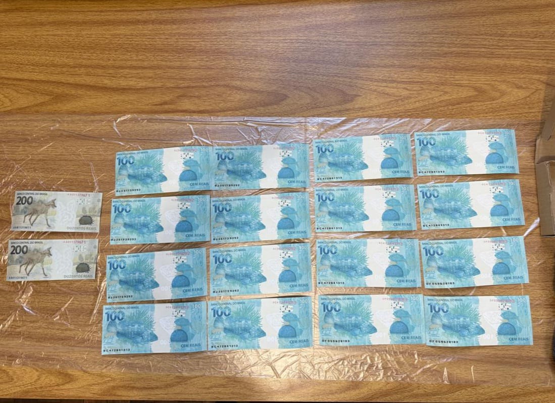 De posse das informações, agentes da Polícia Civil se deslocaram até a agência, onde aguardaram a retirada do pacote pelo adolescente. Após a retirada, o jovem foi abordado e, durante a verificação, constatou-se que o pacote continha uma caixa de papelão com cédulas de real apresentando características de falsificação. Foi apreendido 2.000,00 Reais em notas falsas de 100 e 200 Reais.