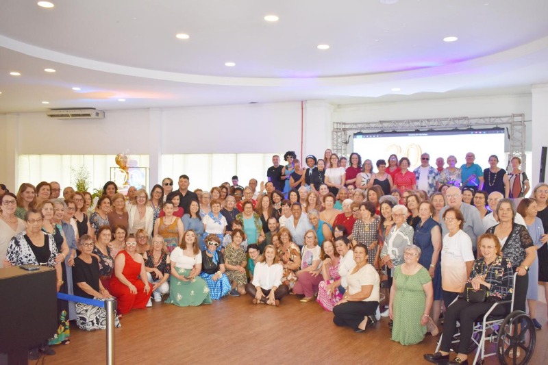 O Sesc Carazinho celebrou, no dia 5 de novembro, quarta-feira, os 20 anos do Programa Maturidade Ativa em uma festa especial realizada no salão do Clube Comercial, reunindo cerca de 180 pessoas. A comemoração foi marcada por homenagens emocionantes aos facilitadores que contribuíram para a construção e o crescimento do projeto ao longo das últimas duas décadas, com destaque para Gabriela Citolin, atual responsável pela iniciativa no município.