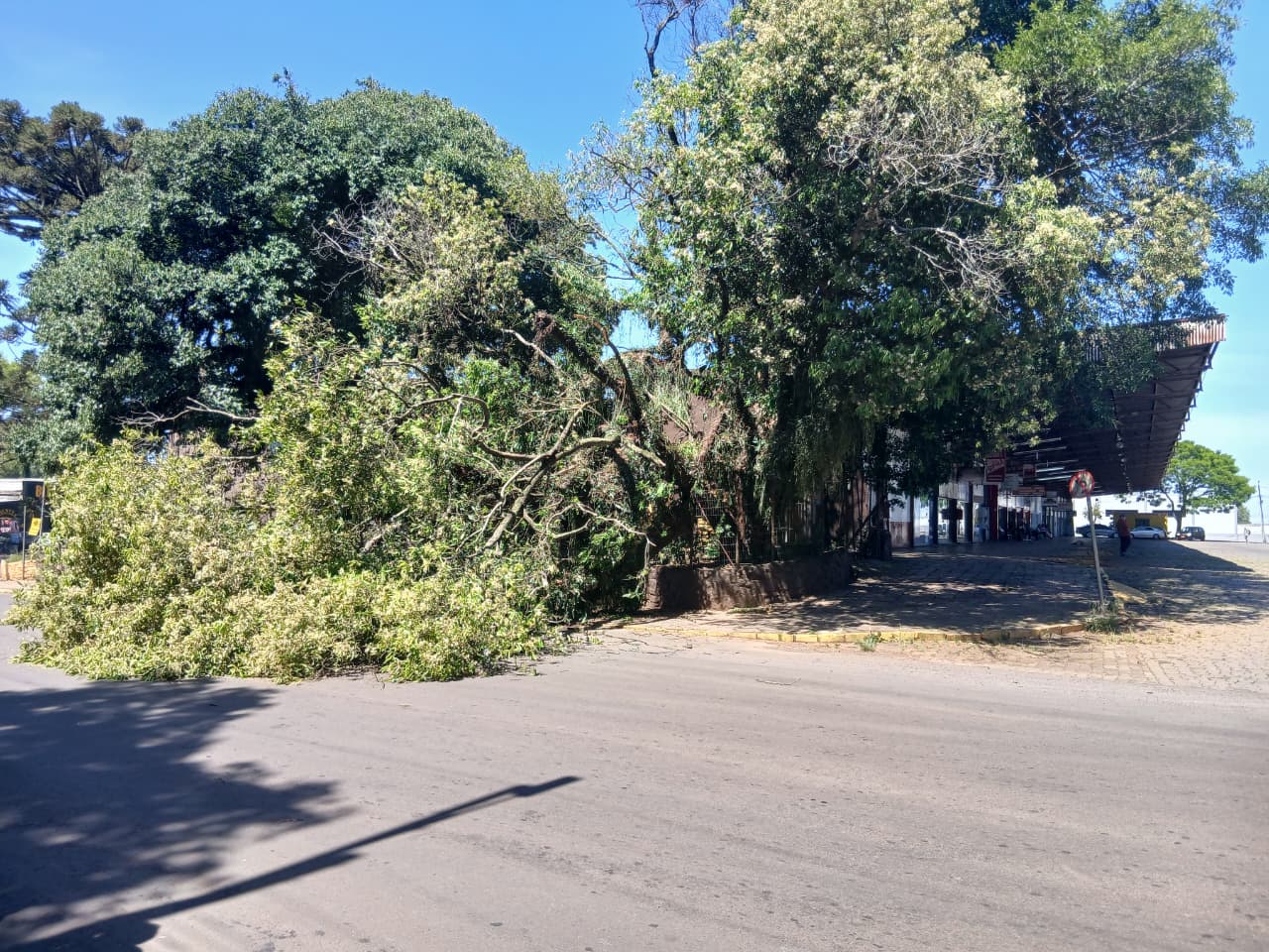 Queda de árvore ao lado da Rodoviária chama atenção em Carazinho