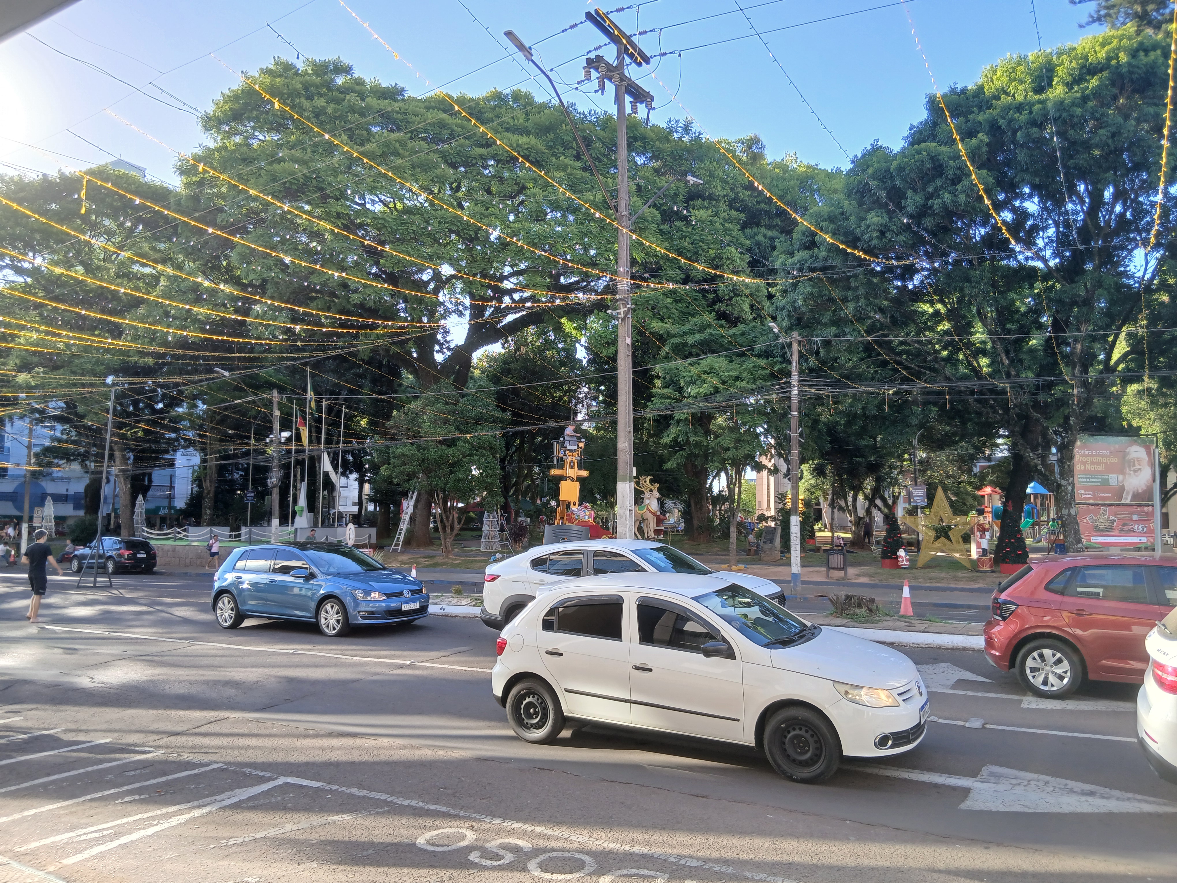 A prefeitura de Carazinho informou hoje (4) que a partir das 18h desta quinta-feira o trecho da avenida Flores da Cunha em frente a Praça Albino Hillebrand, na quadra entre as ruas Bernardo Paz e Pedro Vargas, ficará completamente interrompido, nos dois sentidos, para a montagem da estrutura da chegada do Papai Noel, marcada para amanhã, sexta (5), a partir das 19h.
