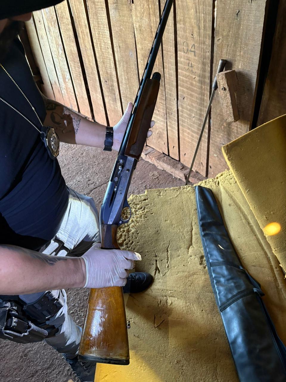 Durante as buscas, foi localizado um revólver escondido dentro de uma das paredes da residência, além de munições e jetloaders (dispositivos de recarga rápida para revólver), havendo indícios de que outras armas poderiam ter sido escondidas naquele mesmo espaço. O suspeito assumiu a posse do armamento, mas não informou a procedência dos itens.