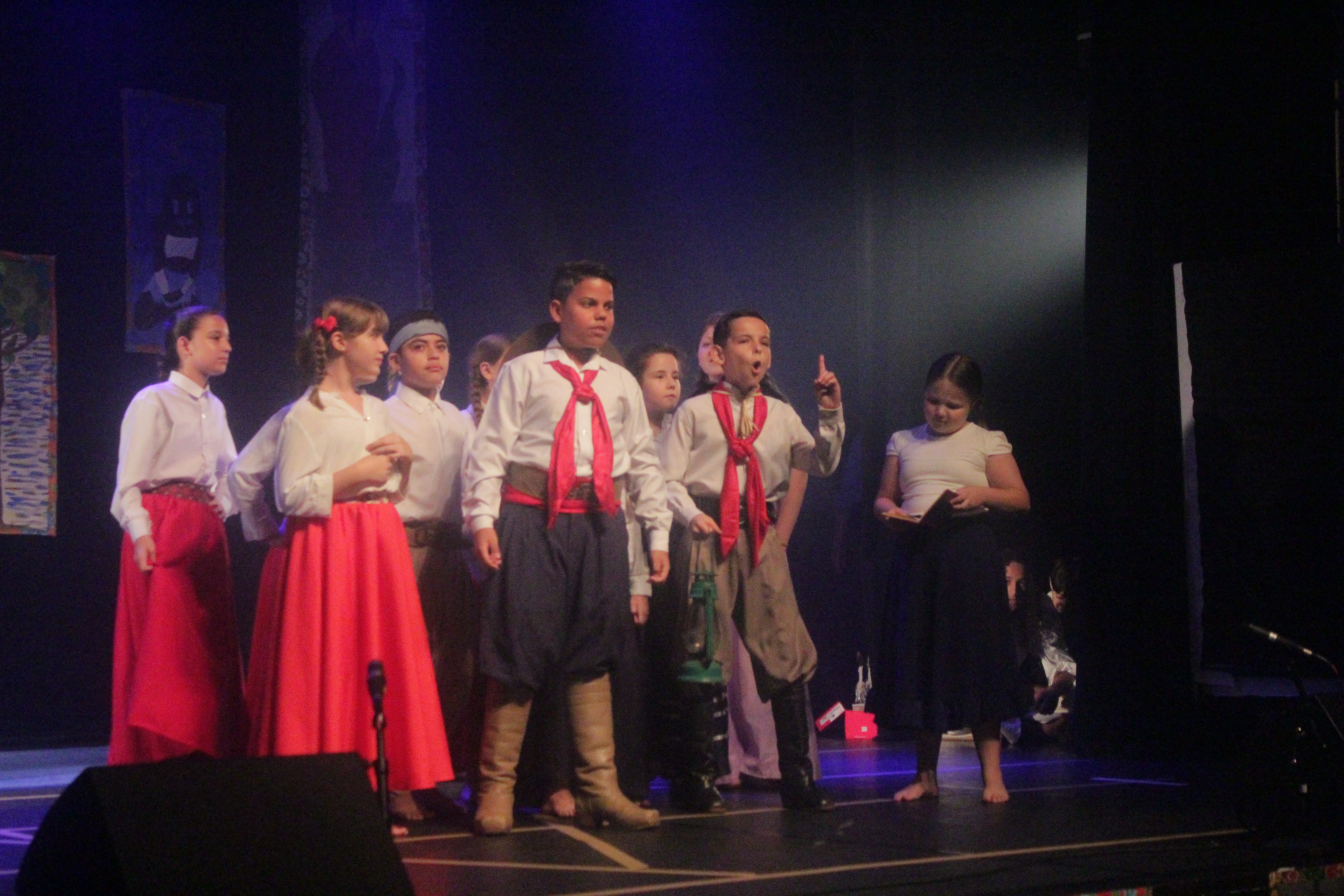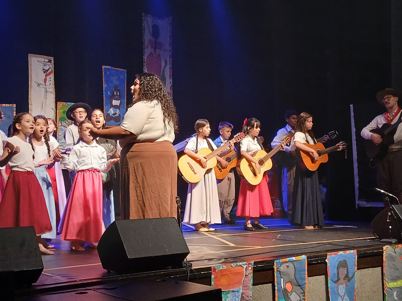 O espetáculo trouxe passagens do livro "Tropeirismo para Crianças", da jornalista e escritora Mara Steffens Nogueira, destacando o tropeirismo como movimento essencial para o desenvolvimento do Brasil, inserindo Carazinho neste contexto.