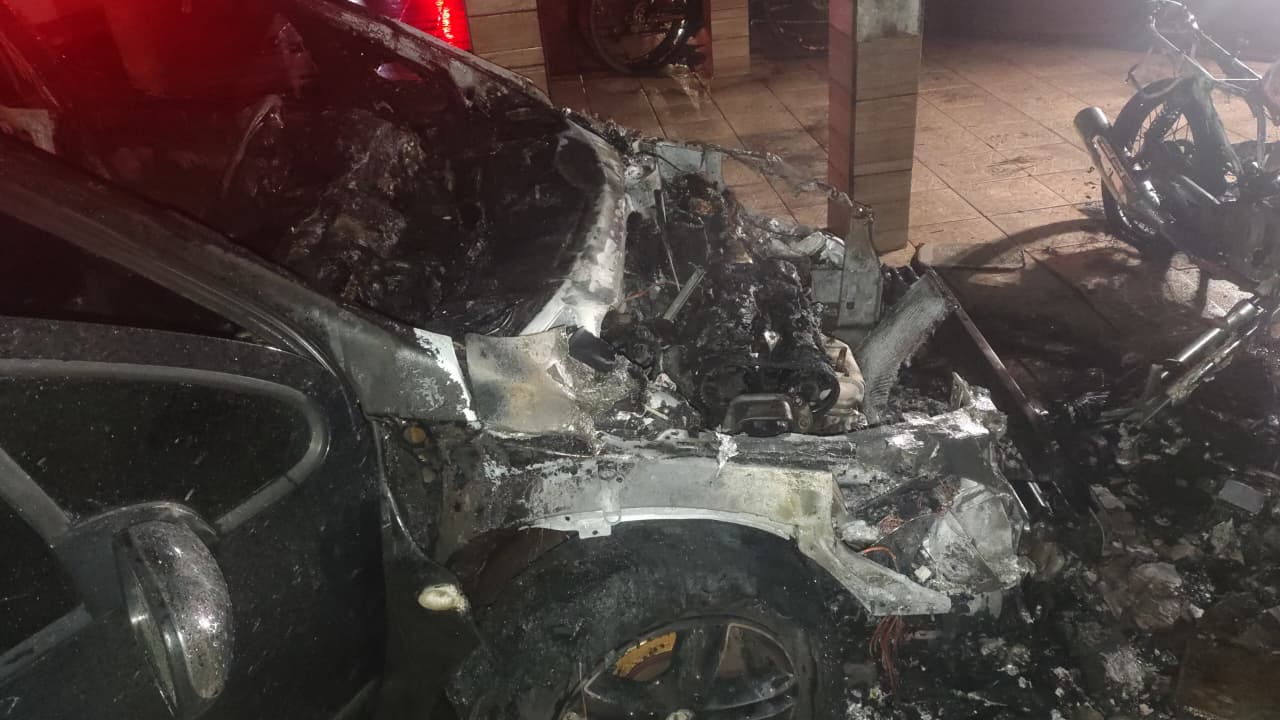Três veículos e duas motocicletas foram danificados por um incêndio registrado na madrugada de hoje (19), na garagem de um prédio localizado na Rua Alexandre da Mota, em Carazinho. Foi