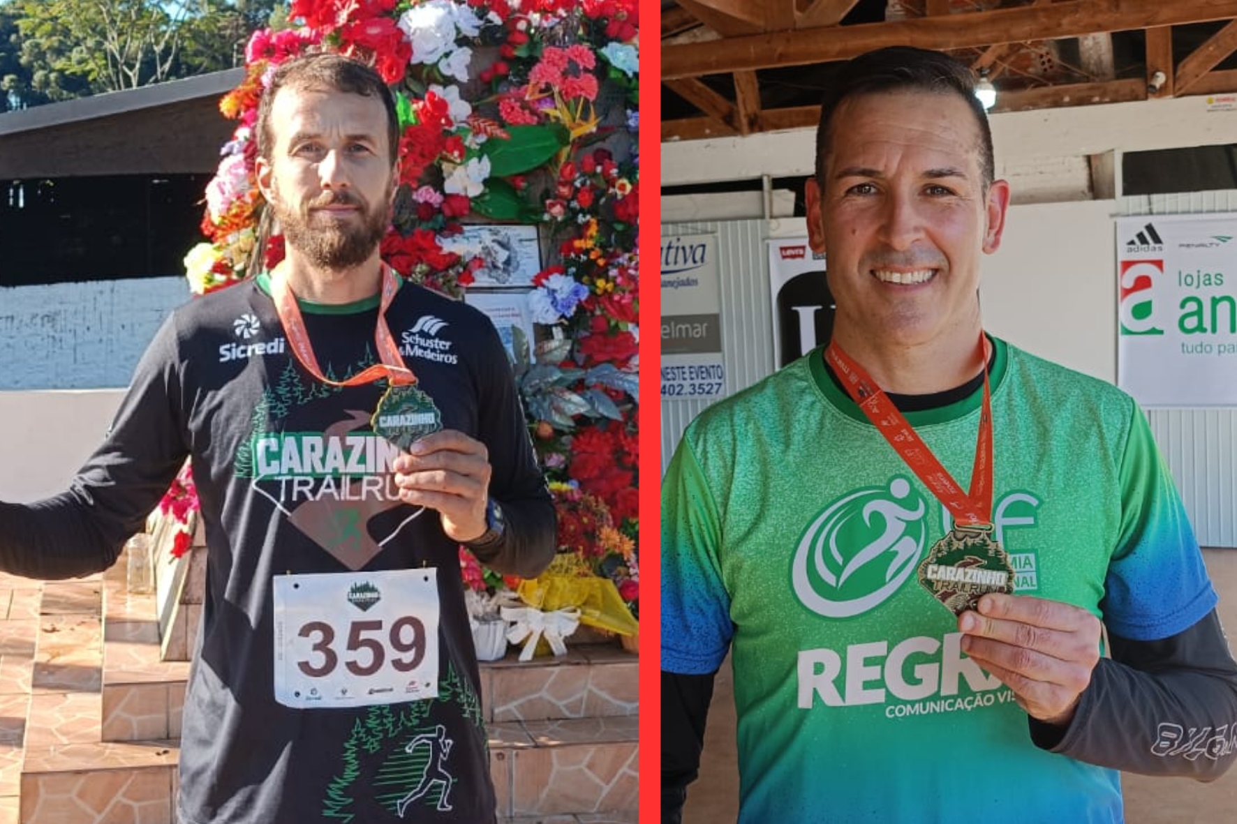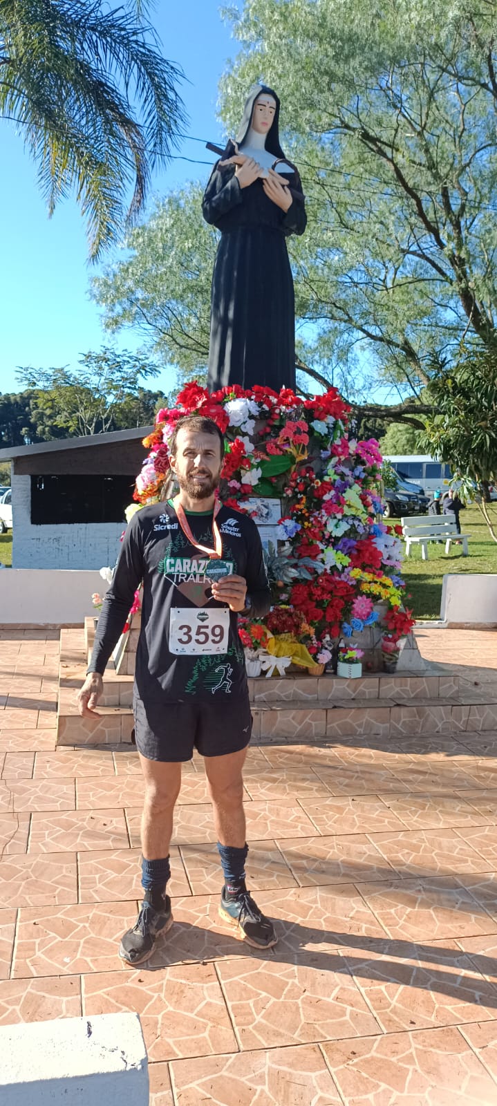 Diones José de Quadros é carazinhense e venceu os 15Km. Ele levou 1h04min29s. Assim que chegou, foi imediamente agradecer Santa Rita de Cássia, da qual é devoto. "O trecho mais difícil foi o zigue zague perto dos pinheiros. A umidade também foi um complicador, mas eu treinei bastante, tive apoio da família e da Correcar. Gosto muito de correr, é meu esporte favorito", declarou, ressaltando que adotou a corrida como esporte na pandemia.