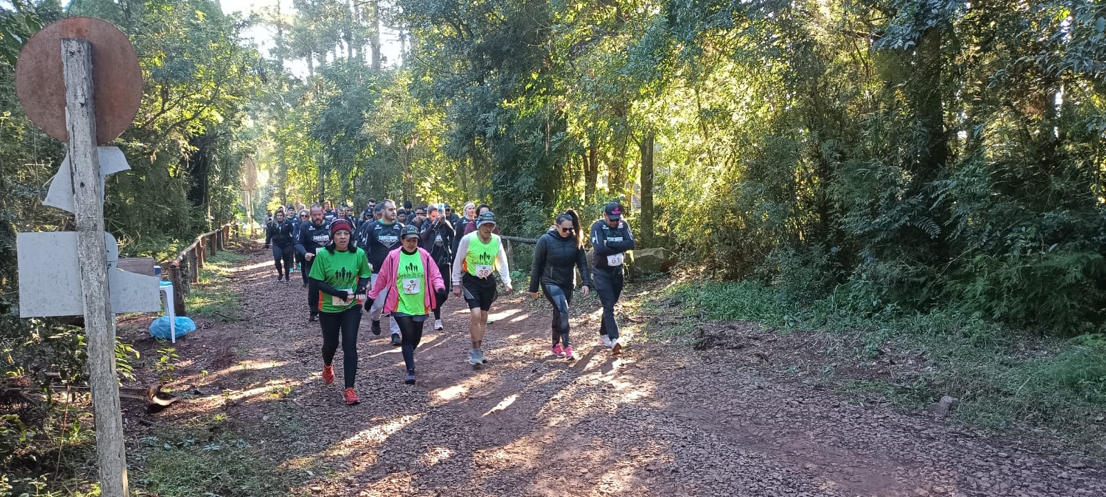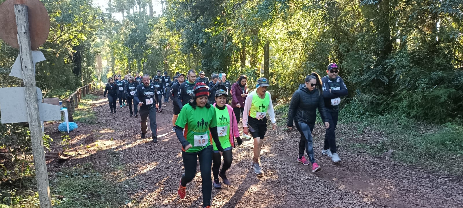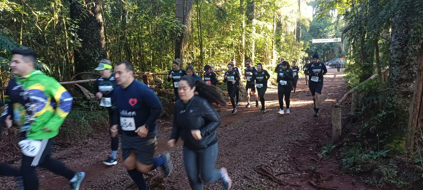 A primeira largada foi para os participantes do percurso maior. Todo trajeto estava sinalizado com placas e fitas laranjas. O frio foi só um dos obstáculos enfrentados. O terreno irregular, em meio a mata e a umidade também foram desafios que os competidores tiveram de superar. Depois de quinze minutos do primeiro grupo, largaram os inscritos para a corrida de menor percurso, e por fim, também cerca de 15min depois, quem preferiu a caminhada.