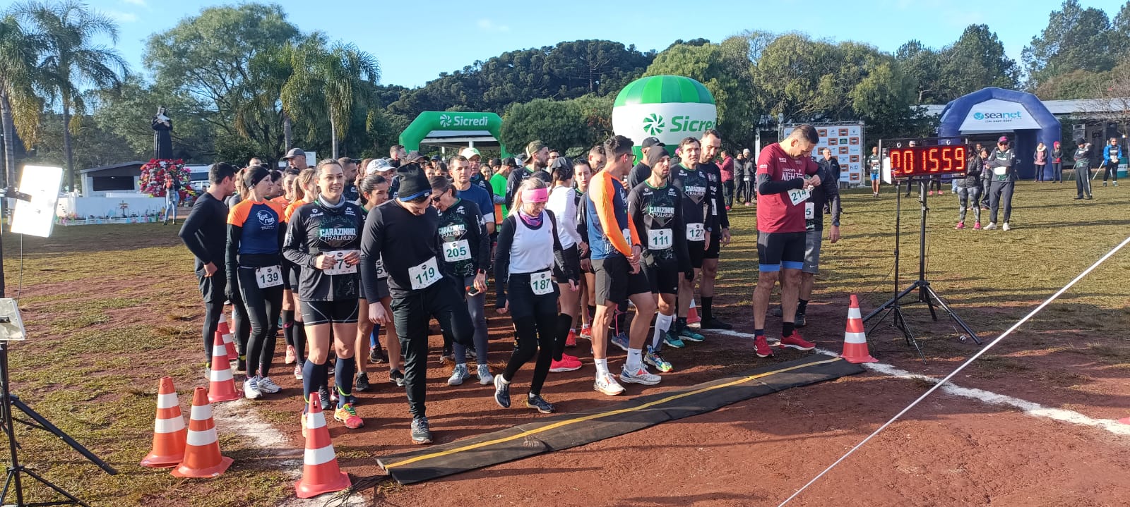 A manhã fria em Carazinho não espantou os 330 inscritos do 1º Carazinho Trail Run. A competição no Santuário de Santa Rita de Cassia, com trajeto quase todo dentro do Parque Natural João Alberto Xavier da Cruz foi dividida em três partes: prova de 15Km, 6Km e caminhada de 6Km.