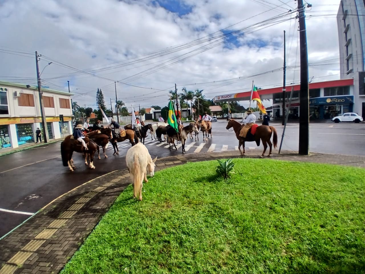 Depois, os tradicionalistas pegaram a Rua Marechal Hermes, no bairro Fábio, a Padre Gusmão, e a Monte Alegre. Atravessaram a Avenida São Bento e seguiram na mesma rua até a Escola Alfredo Scherer, na esquina com a Avenida Pátria. Aquele ponto é conhecido como Passo do Carazinho, onde os tropeiros costumavam parar para descansar e dar água para a tropa, uma vez que existe um córrego no local.