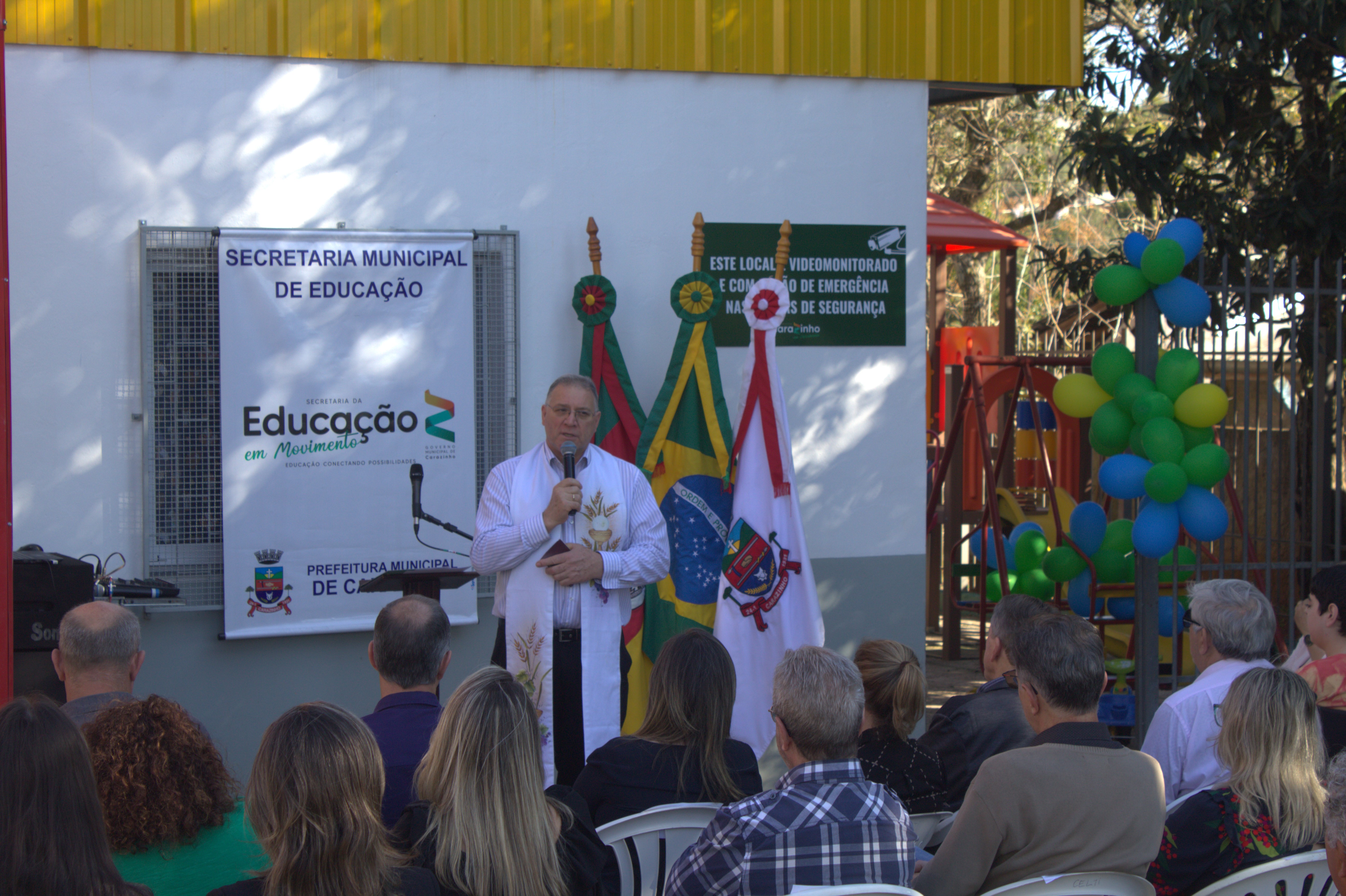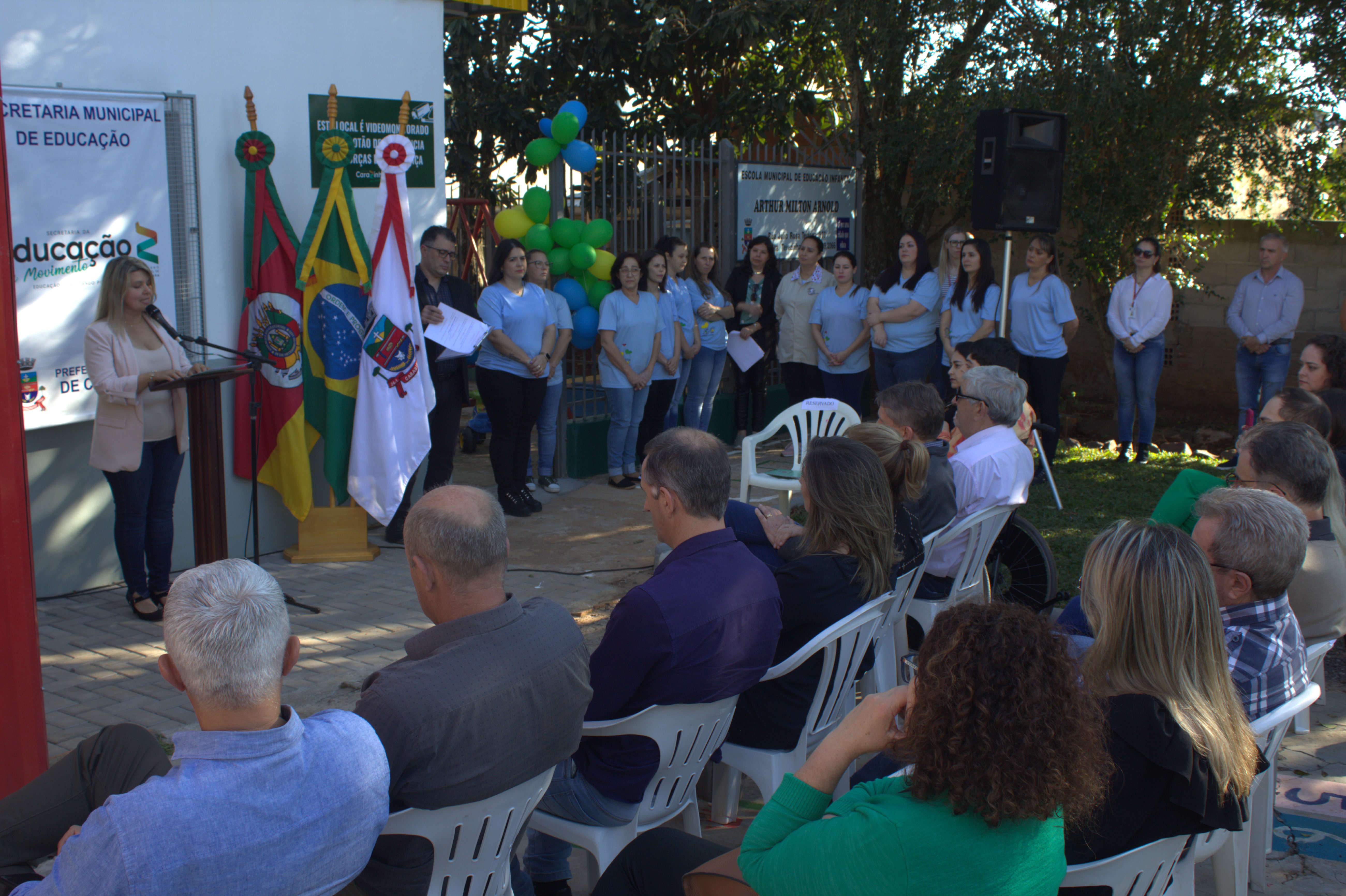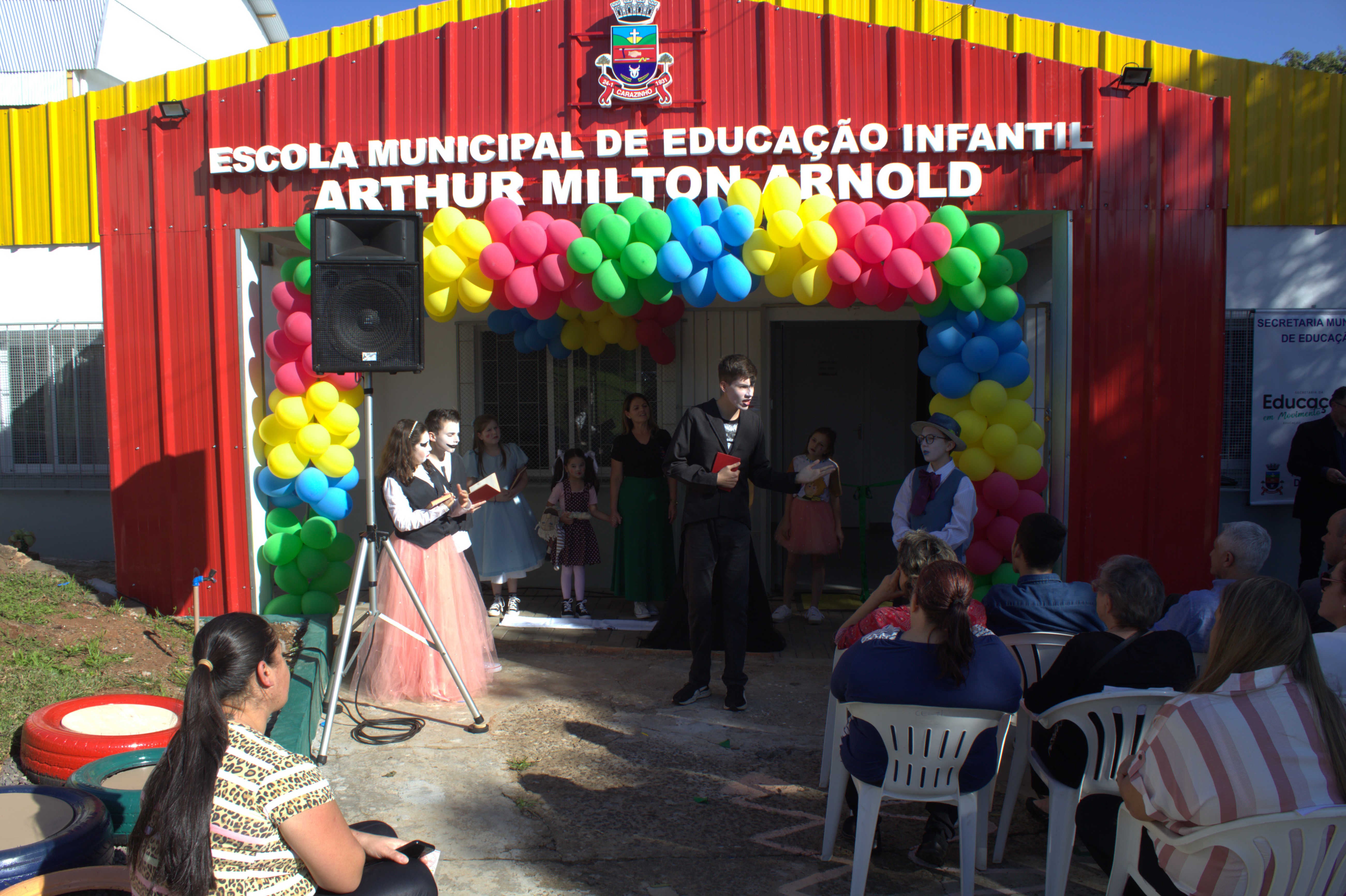 A solenidade foi marcada pela apresentação da turma de 5 anos da escola e do Giro de Histórias do Centro Cultural Sandra Verônica da Maia Citolin. Teve bênção do Padre Darcy De Carli, pároco da Paróquia Nossa Senhora de Fátima. O ato foi prestigiado por lideranças de vários segmentos da cidade, além de secretários municipais, diretores de outras escolas, servidores da educação e familiares do empresário que dá nome à insituição. "Esta escola é de vocês. Tomem posse dela, zelem por ela. Nossos alunos são muito especiais porque estão tendo privilégio de estudar em uam escola toda reformada e com 'cheirinho de nova'. Aos pais agradcemos a confiança depositada em nossa equipe. Obrigada por estarem conosco nesta missão de formar cidadãos de bem", destacou a diretora, Lisiane Bandeira.