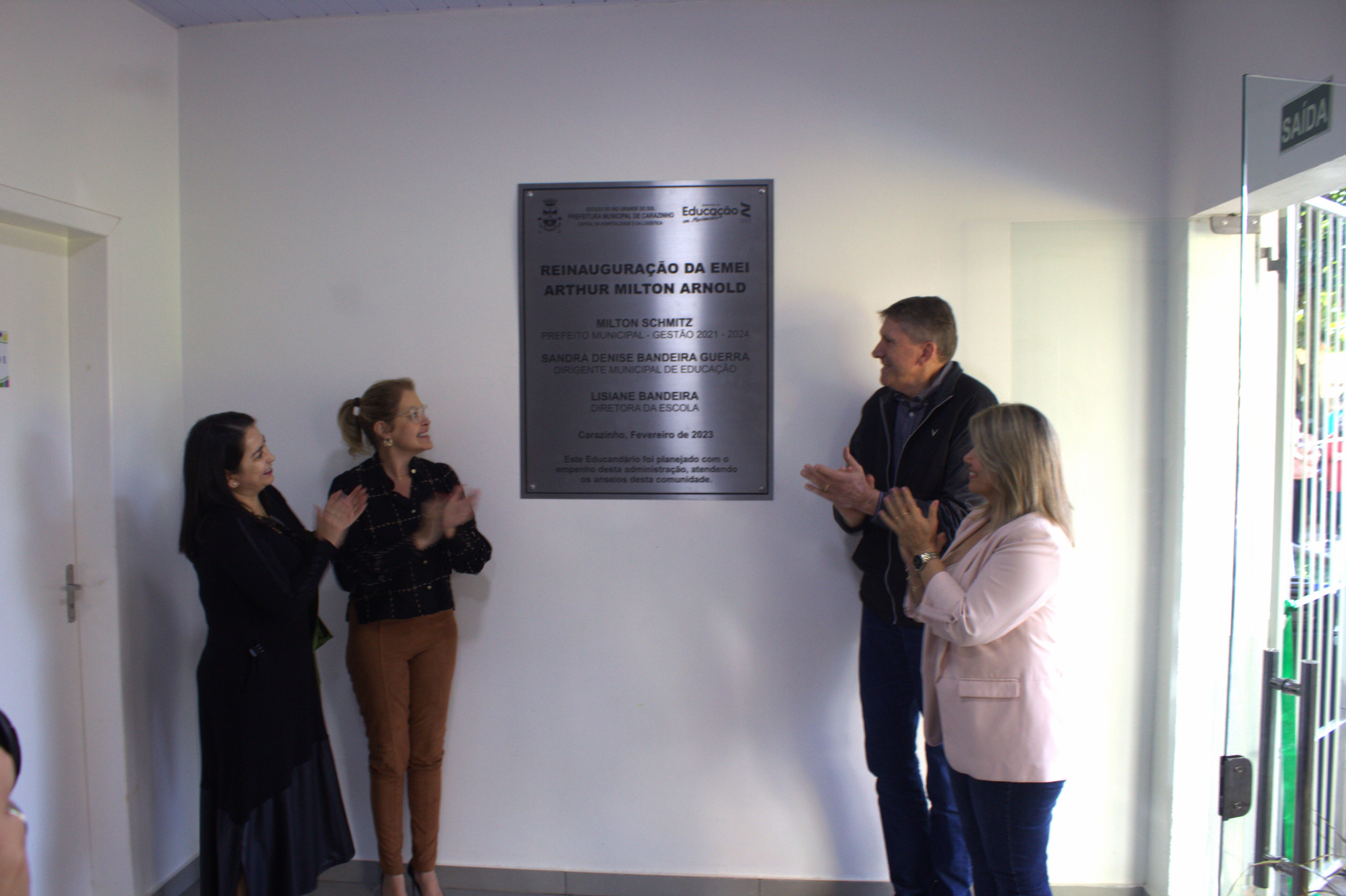 A comunidade do bairro Santa Terezinha acompanhou na tarde de ontem (27) a reinauguração da Escola de Educação Infantil Arthur Milton Arnold. O educandário passou por reforma e ampliação nos últimos meses. Enquanto as obras não eram concluídas, as crianças de 4 meses a 5 anos eram atendidas em um imóvel alugado no mesmo bairro.