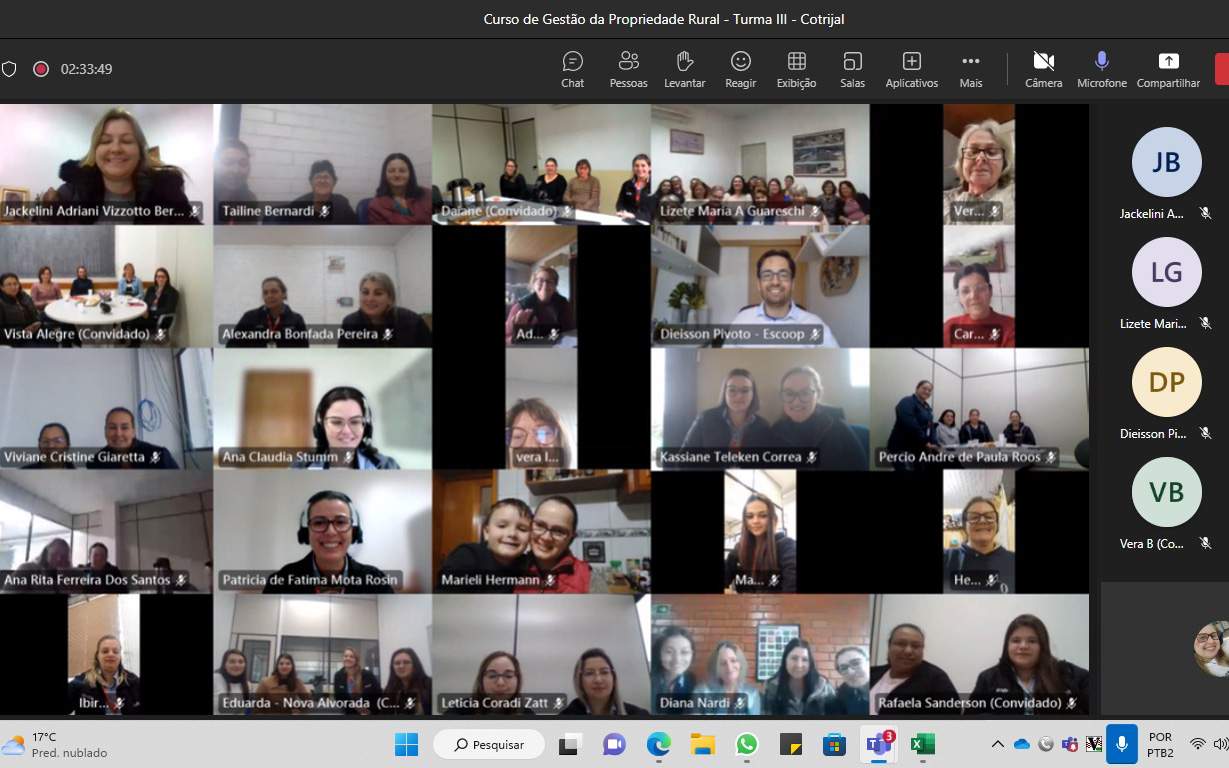 O curso foi ministrado de forma on-line, pelo professor Dieisson Pivoto, da Faculdade de Tecnologia do Cooperativismo, do Sescoop/RS. O primeiro módulo teve palestra sobre as tendências da gestão da propriedade rural, apresentando também ferramentas que podem auxiliar na eficiência do trabalho e tomada de decisões.
