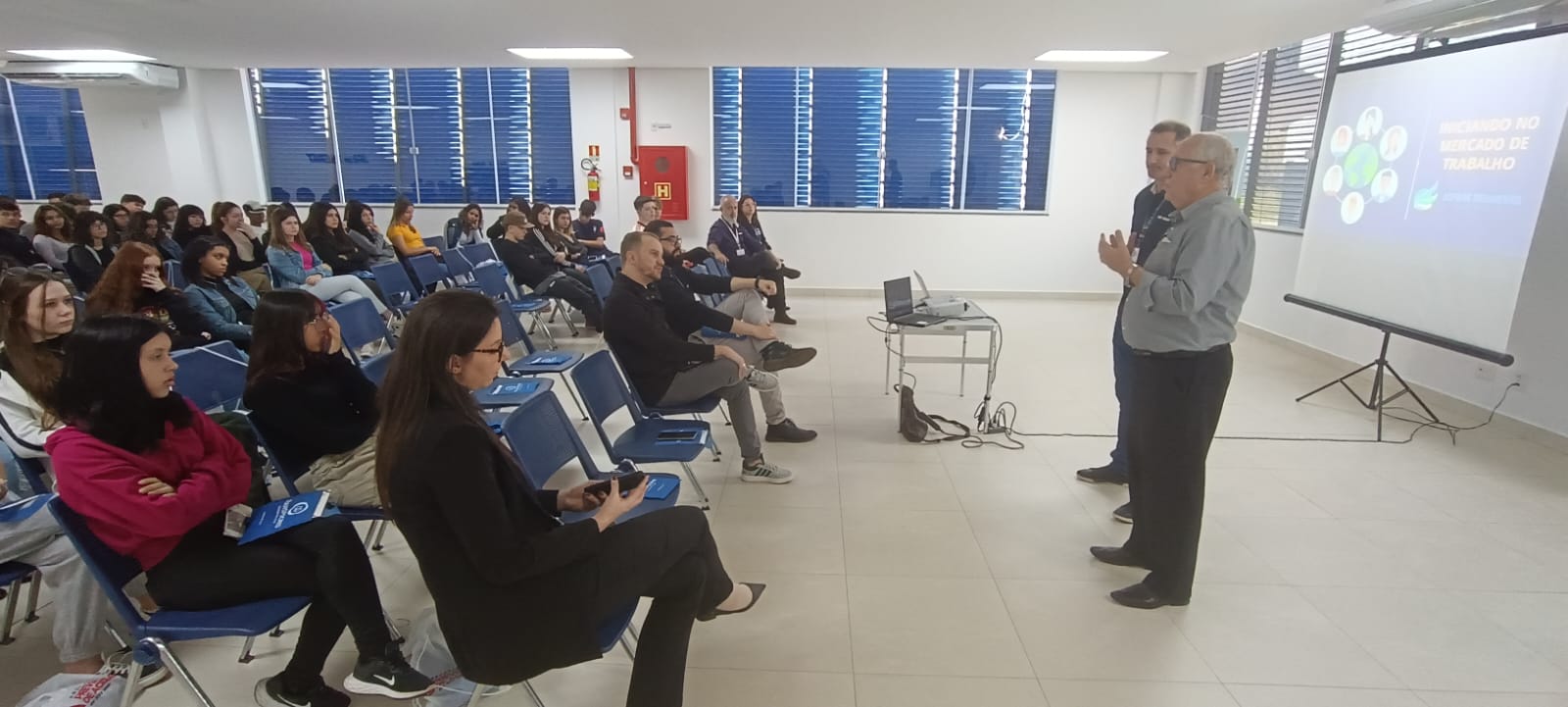 O dia começou com duas palestras. O instrutor do Sest Senat, Alexandre Teixeira, falou sobre a profissão de motorista e abordou questões relacionadas a formação necessária e a legislação. Em seguida, Thiago Pianezzer abordou o tema "Iniciando no Mercado de Trabalho", salientando aspectos motivacionais, a importância da busca de conhecimento, de qualificação e até o que considerar quando elaborar um currículo.