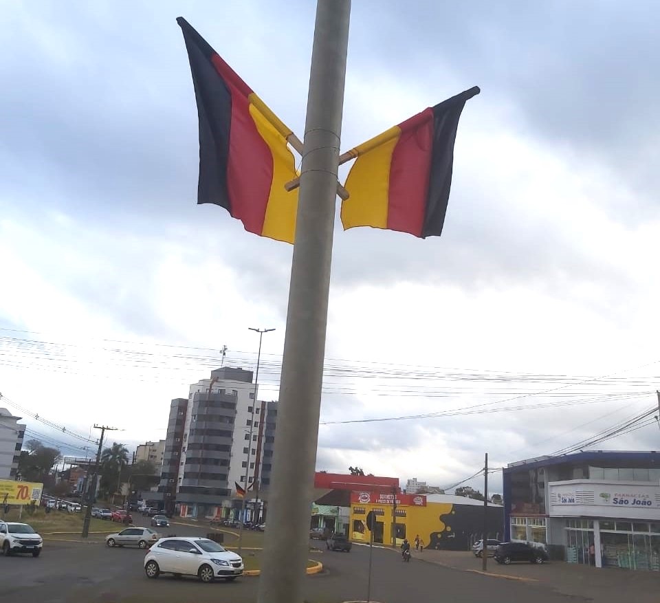Vermelho, amarelo e preto. As cores da bandeira da Alemanha estão presentes ao longo da Avenida Flores da Cunha, em Carazinho, para recordar e marcar os 200 anos da imigração alemã no Brasil. As bandeiras que fazem referência ao legado trazido da Europa pelos alemães foram confeccionadas e instaladas pela Associação da Etnia Alemã.