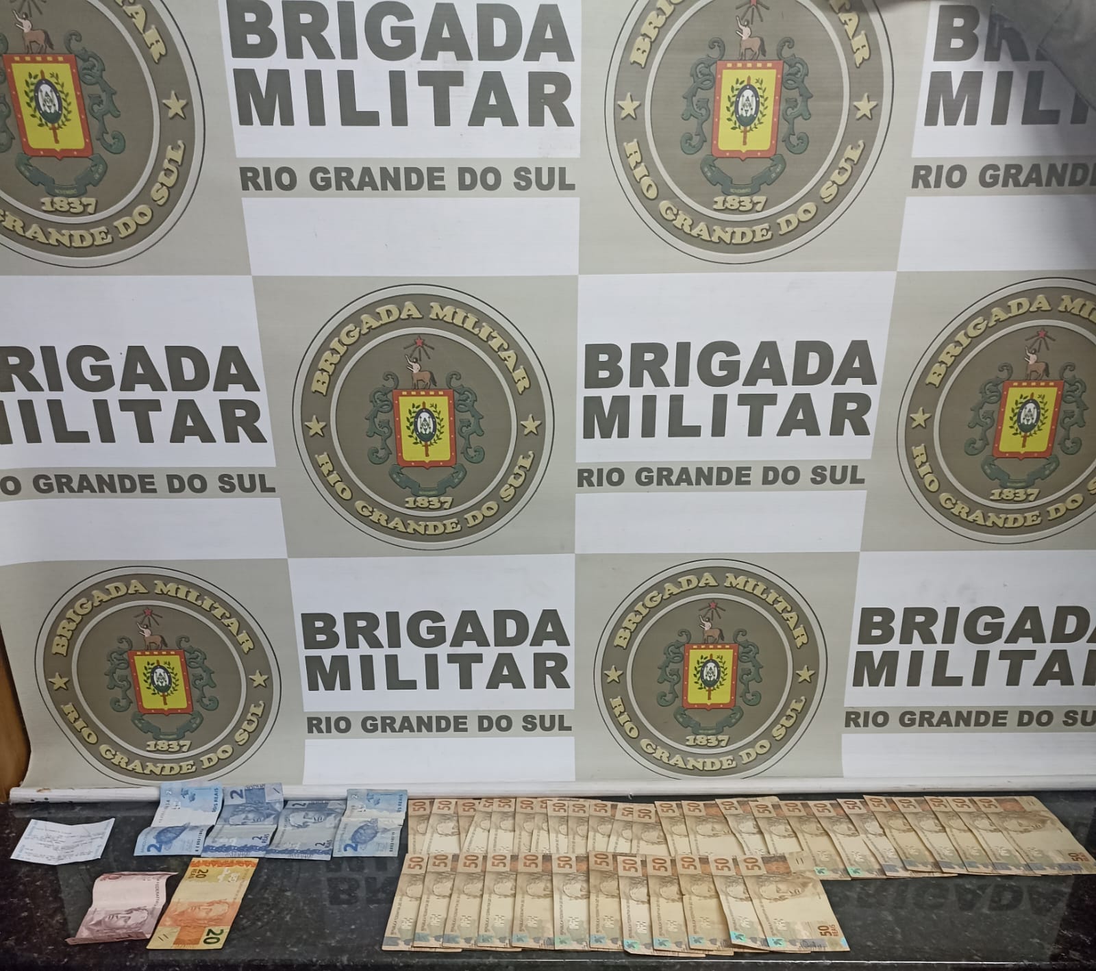 Com base nas informações levantadas, os policiais descobriram que o indivíduo estava hospedado em um hotel da cidade. As guarnições se deslocaram até o local e visualizaram o homem saindo do estabelecimento. Durante a abordagem, foram localizados em revista pessoal R$ 1.838,00 em dinheiro no bolso do suspeito. O valor era fruto do golpe aplicado horas antes.