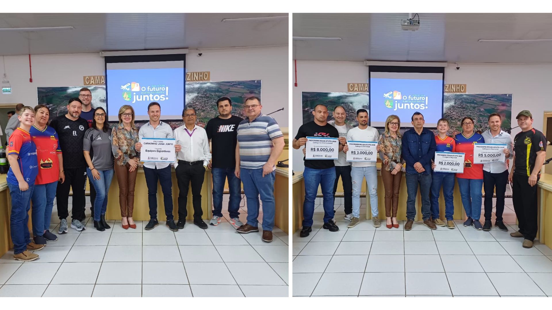 A prefeitura de Carazinho reuniu hoje (23), na Câmara de Vereadores, os contemplados com patrocínios esportivos. Foram lançados três editais, um para o Bolsa Atleta, com previsão de distribuição de R$ 75 mil. Um segundo edital contemplou equipes esportivas, de várias modalidades, com R$ 120 mil, e um terceiro, para eventos esportivos, com R$ 150 mil.