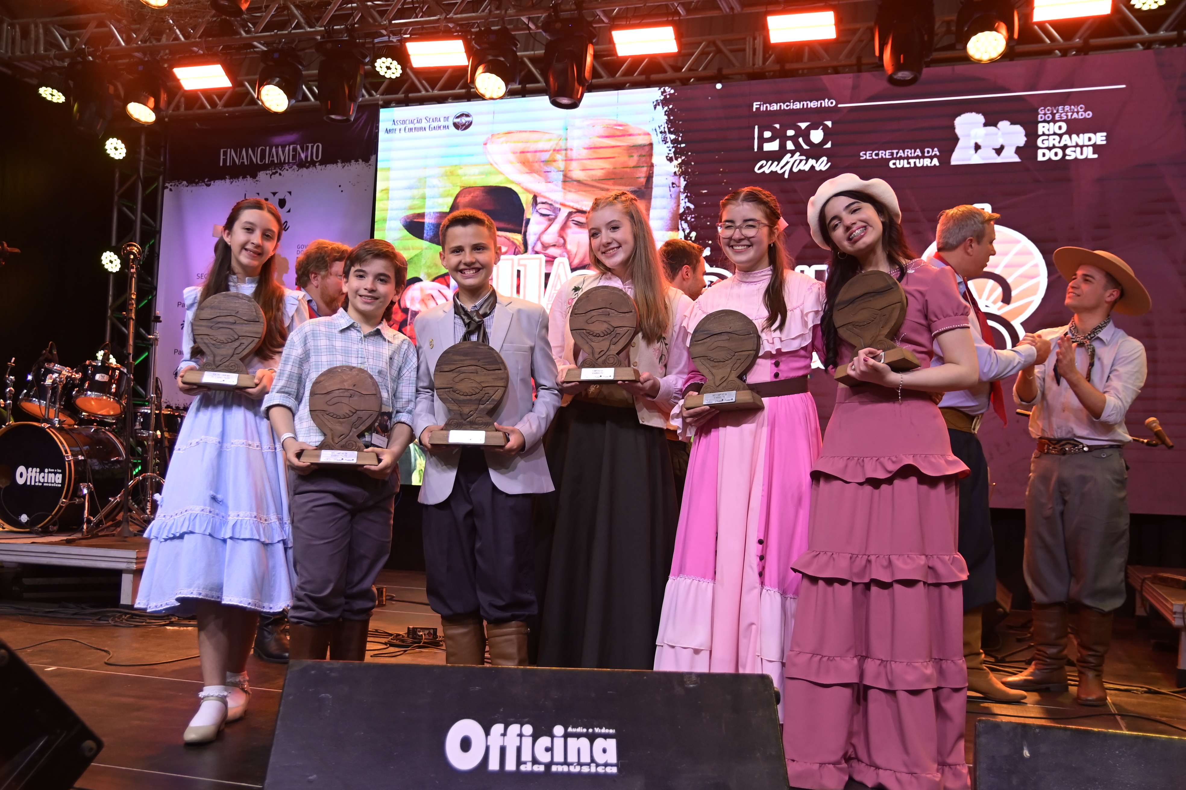 Foram premiados há pouco, no palco da 24ª Seara da Canção Gaúcha, os talentos da 11ª Searinha. Confira: