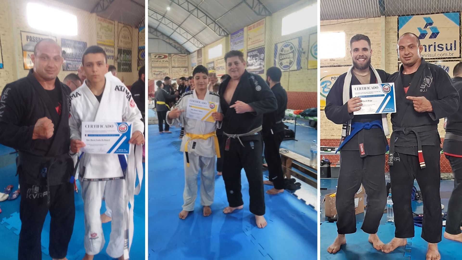 A matriz da equipe, que fica em Carazinho, levou três representantes que foram aprovados. Pedro Fontanelli Pedroso agora é faixa amarela, Eduardo Bicigo e Eder Amaral, faixa azul.
