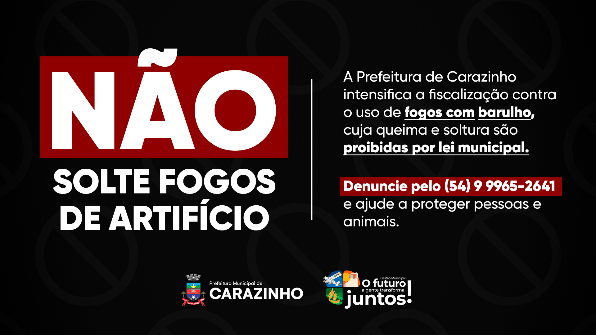 O setor de Bem Estar Animal da prefeitura de Carazinho está alertando a população para a fiscalização realizada especificamente neste mês de dezembro quanto ao uso de fogos de artifício com estampido (barulho), em desacordo com o que prevê a Lei Municipal de Carazinho nº 8.560 de 07/11/2019, de autoria, na ocasião, dos então vereadores João Pedro Albuquerque de Azevedo e Ivomar de Andrade.