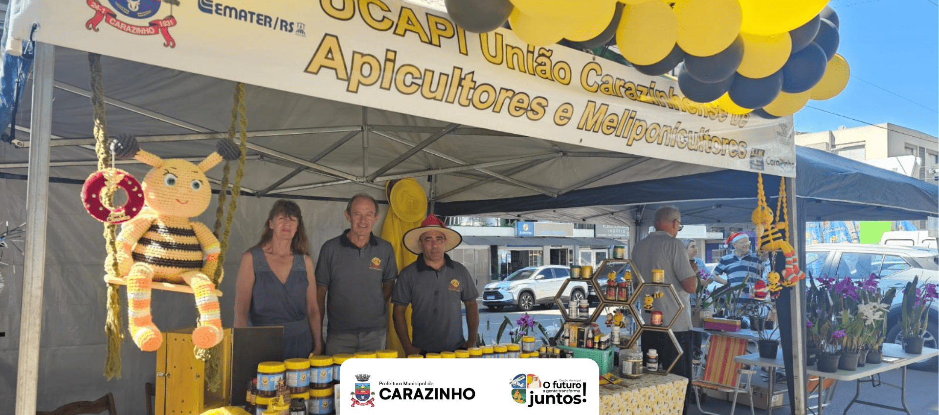 Os estandes foram montados na quadra da Avenida Flores da Cunha em frente à praça Albino Hillebrand. Além dos produtores de Carazinho, incluindo os apicultores e uma variedade de mel e derivados, há a presença de expositores convidados de outras cidades, com itens como queijos, salames, geleias, além de pães, cucas, artesanato, legumes, verduras e frutas da estação.