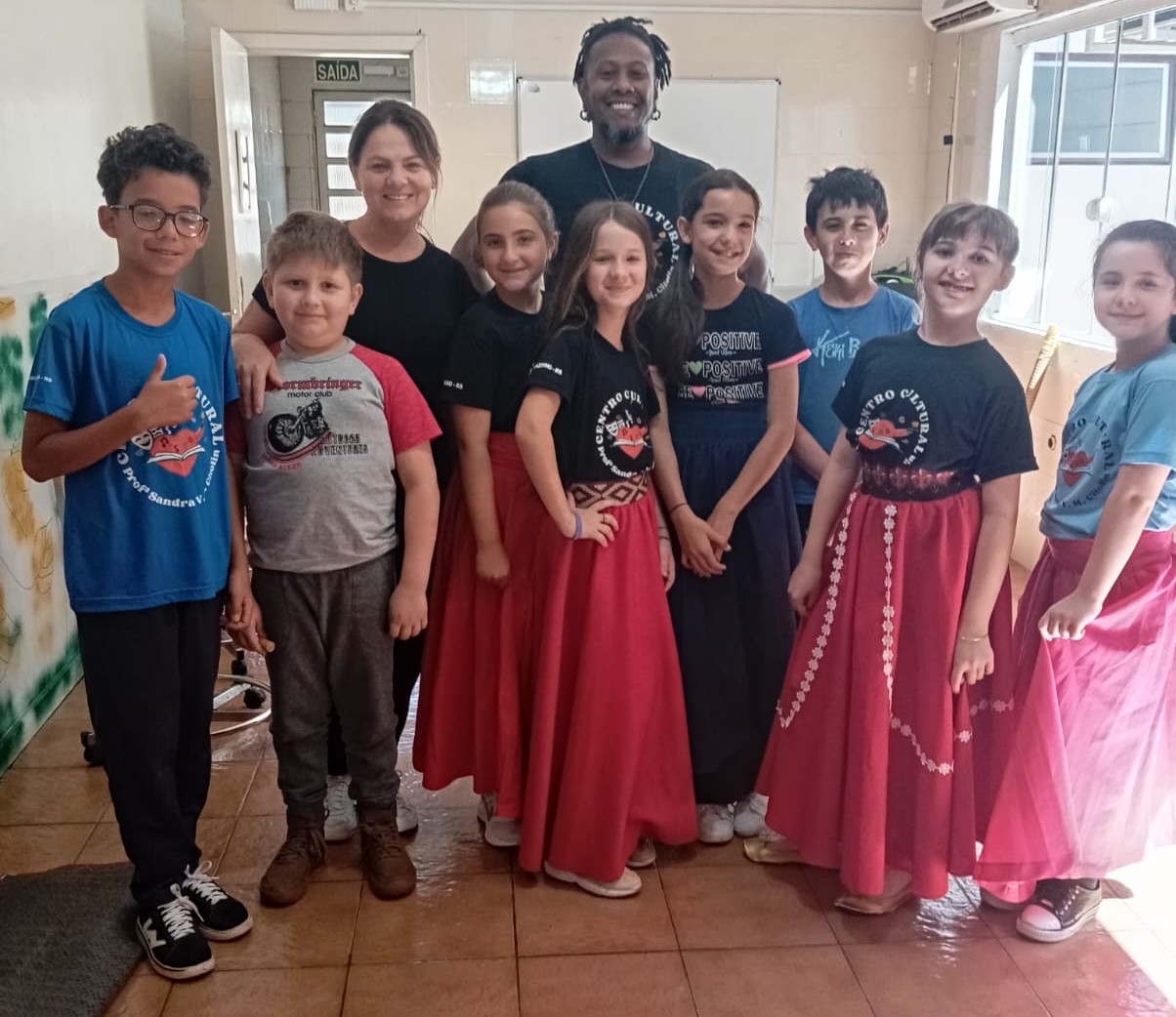 Parte dos alunos da oficina de capoeira, ministrada pelo professor Jamaica, e de literatura, da professora Jacqueline Daudt
