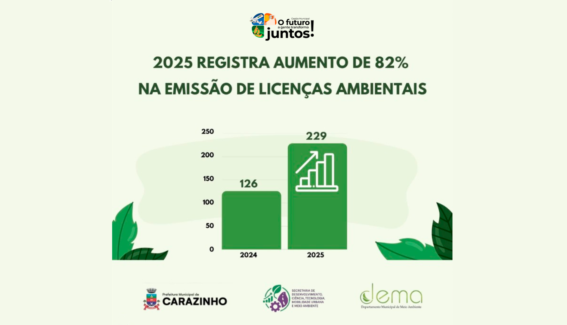 Conforme os dados da Secretaria de Desenvolvimento Econômico de Carazinho, em 2025 houve um aumento de 82% na emissão de licenças ambientais emitidas em relação ao ano anterior
