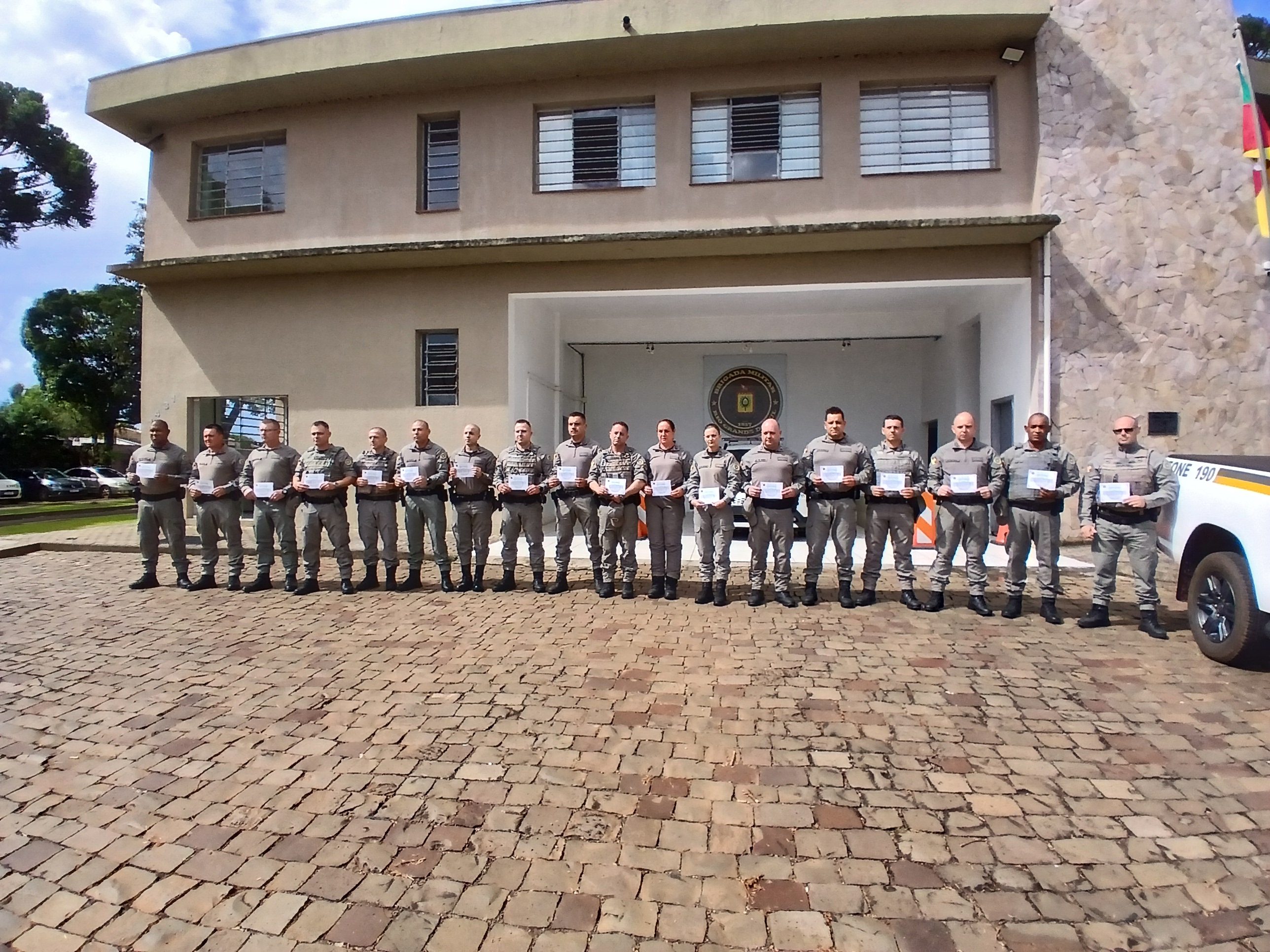 Os policiais militares promovidos na área do 38º Batalhão de Polícia Militar, com sede em Carazinho, foram recepcionados nesta quinta-feira, 08, pelo Comandante da unidade, Tenente-Coronel Juliano Moura, para a cerimônia de diplomação.