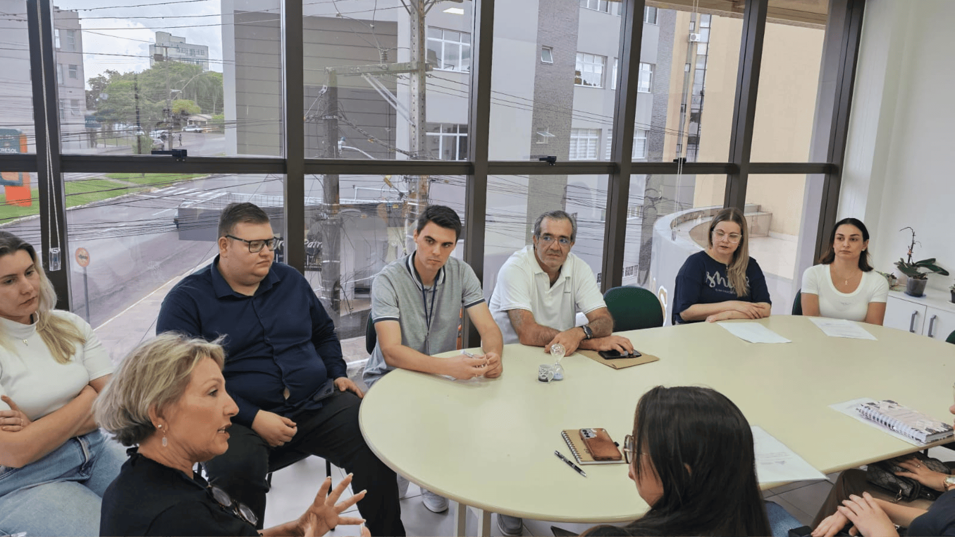 Também participaram desse momento de acolhimento ao grupo de novos profissionais Patrícia Orsolin (RT Médicos), Andrei da Silva (Diretor Administrativo), Marcelo Pecin Vanz (Coordenação Saúde Bucal) e Marcelo Dias (Membro da Coordenação da Atenção Básica).