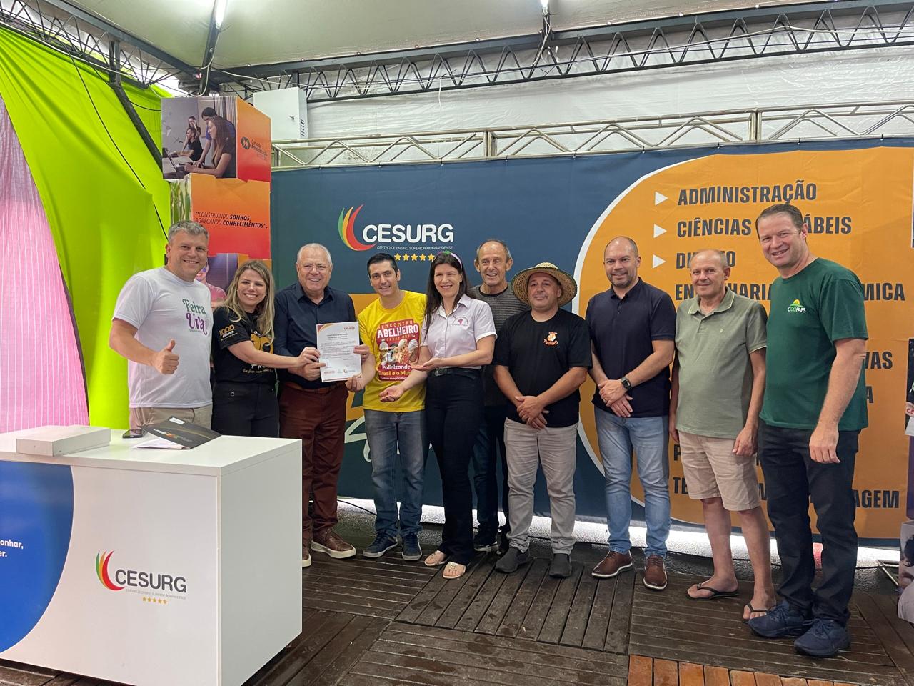 Também na Feira da Uva foi firmada uma parceria com o Centro de Ensino Superior Riograndense (Cesurg), que vai apresentar a 2a Mostra de Trabalho Técnico Científico no Encontro Abelheiro, aproximando o público e criadores de abelhas de trabalhos acadêmicos.