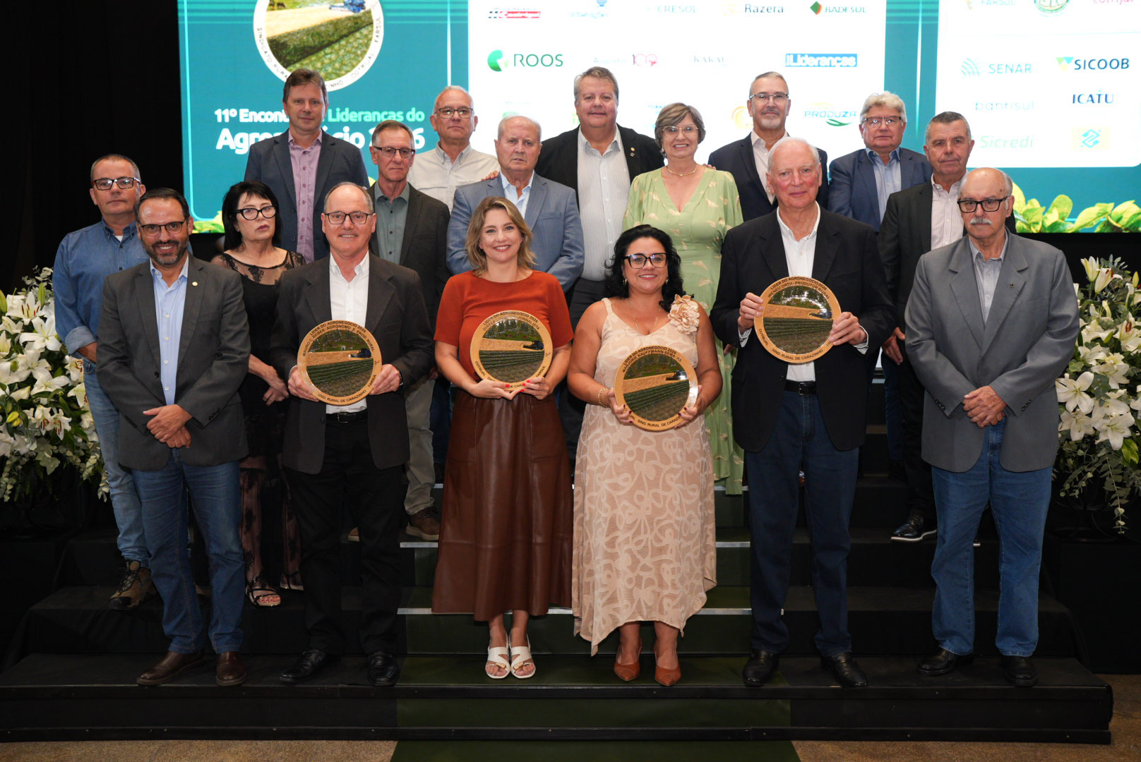 Gisele Loeblein, Ireneu Orth, Marjorie Kauffmann e Mauro Costa Beber foram os homenageados do 11° Encontro de Lideranças do Agronegócio. Promovido pelo Sindicato Rural de Carazinho, Federação da Agricultura do Rio Grande do Sul (Farsul) e Cotrijal, o evento foi realizado na noite desta segunda-feira (9) na Bier Site em Carazinho.