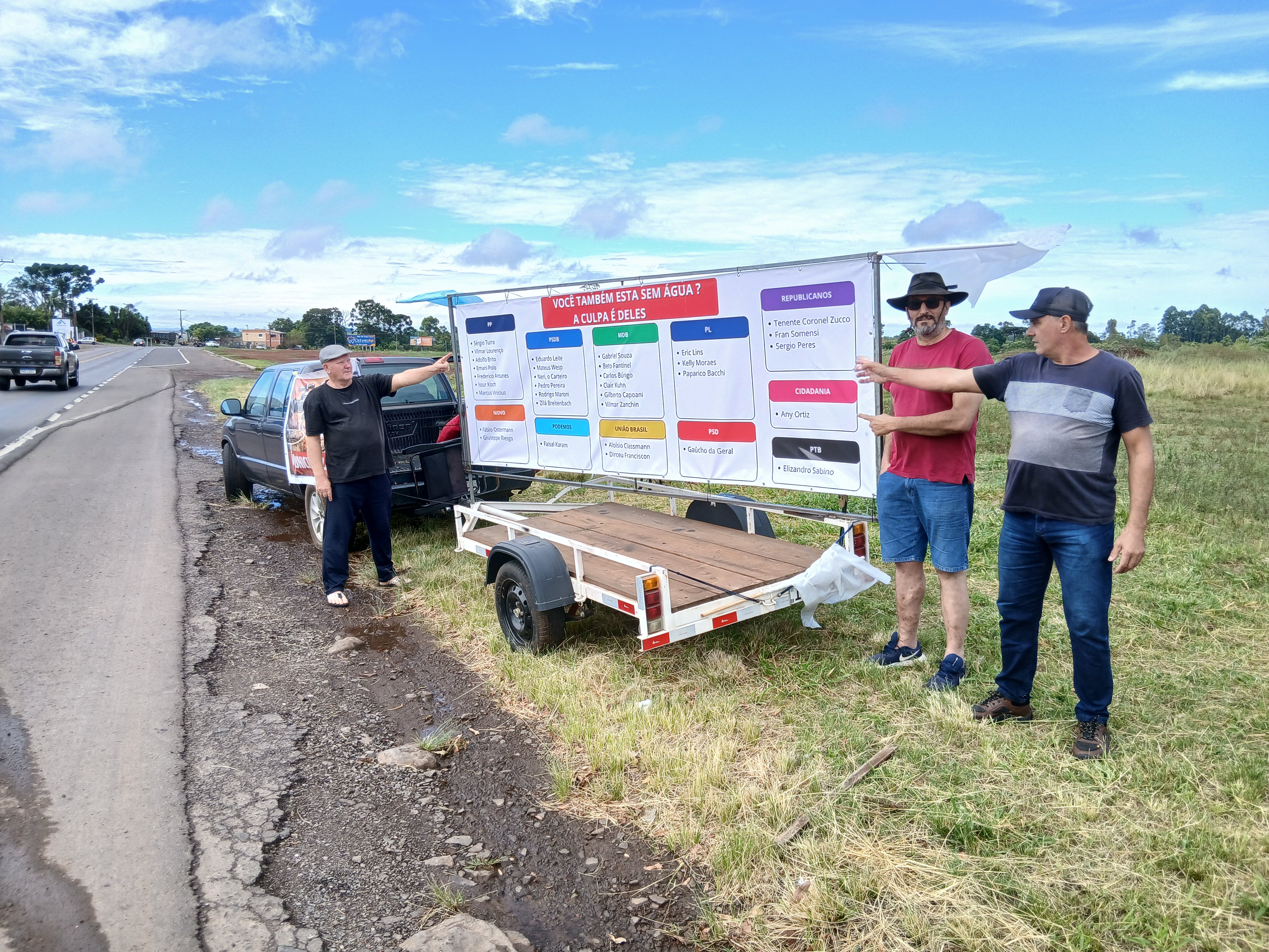 O local e o período escolhidos para o ato sao estratégicos, pois o trecho registra grande movimento de veículos pois é rota para uma grande feira do agronegócio que ocorre em Não-Me-Toque.