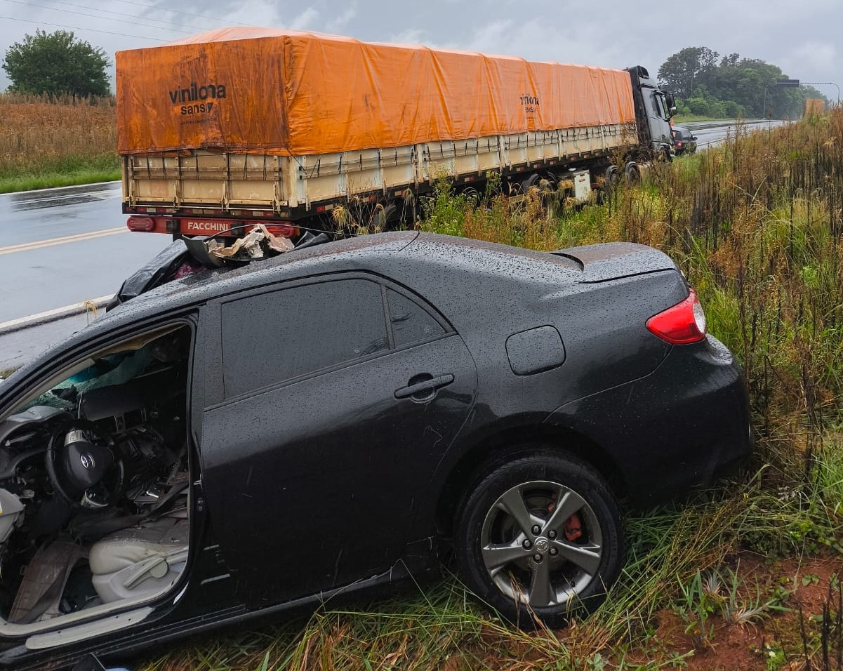 Mulher morre em colisão entre carro e caminhão na BR 386 em Carazinho